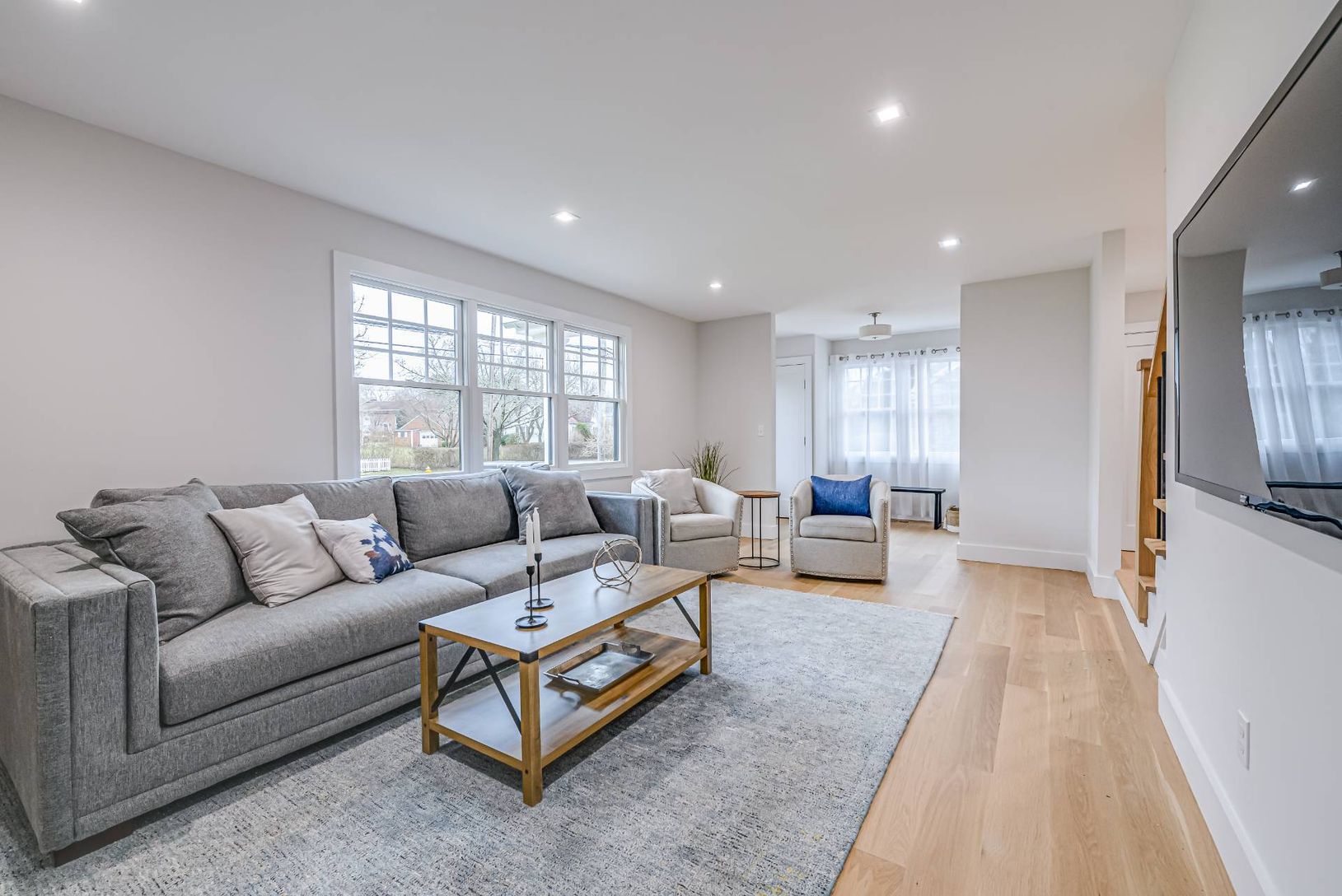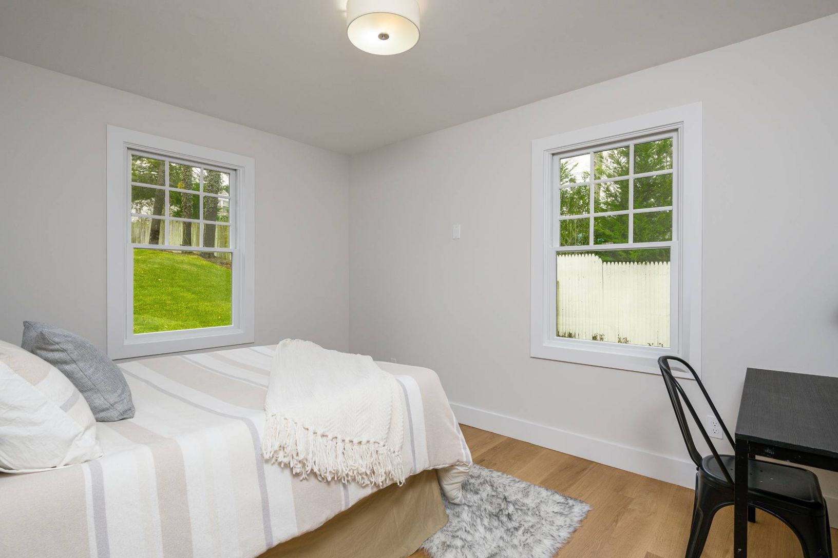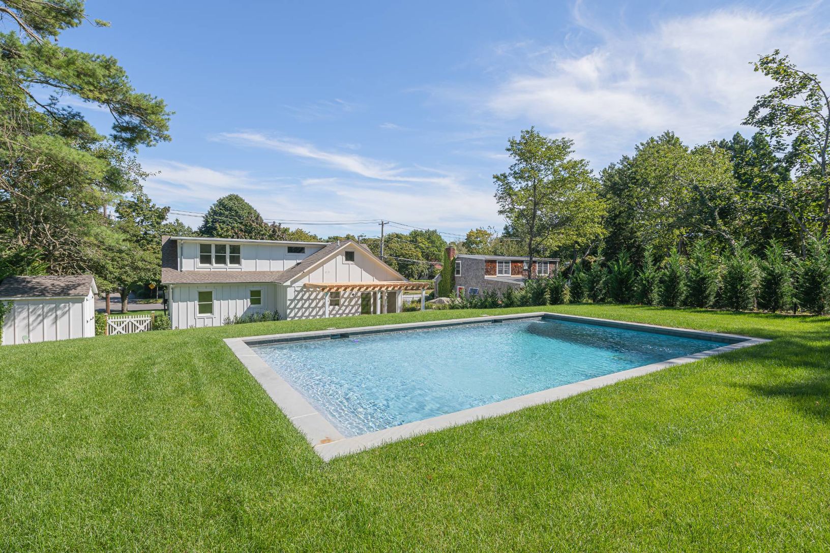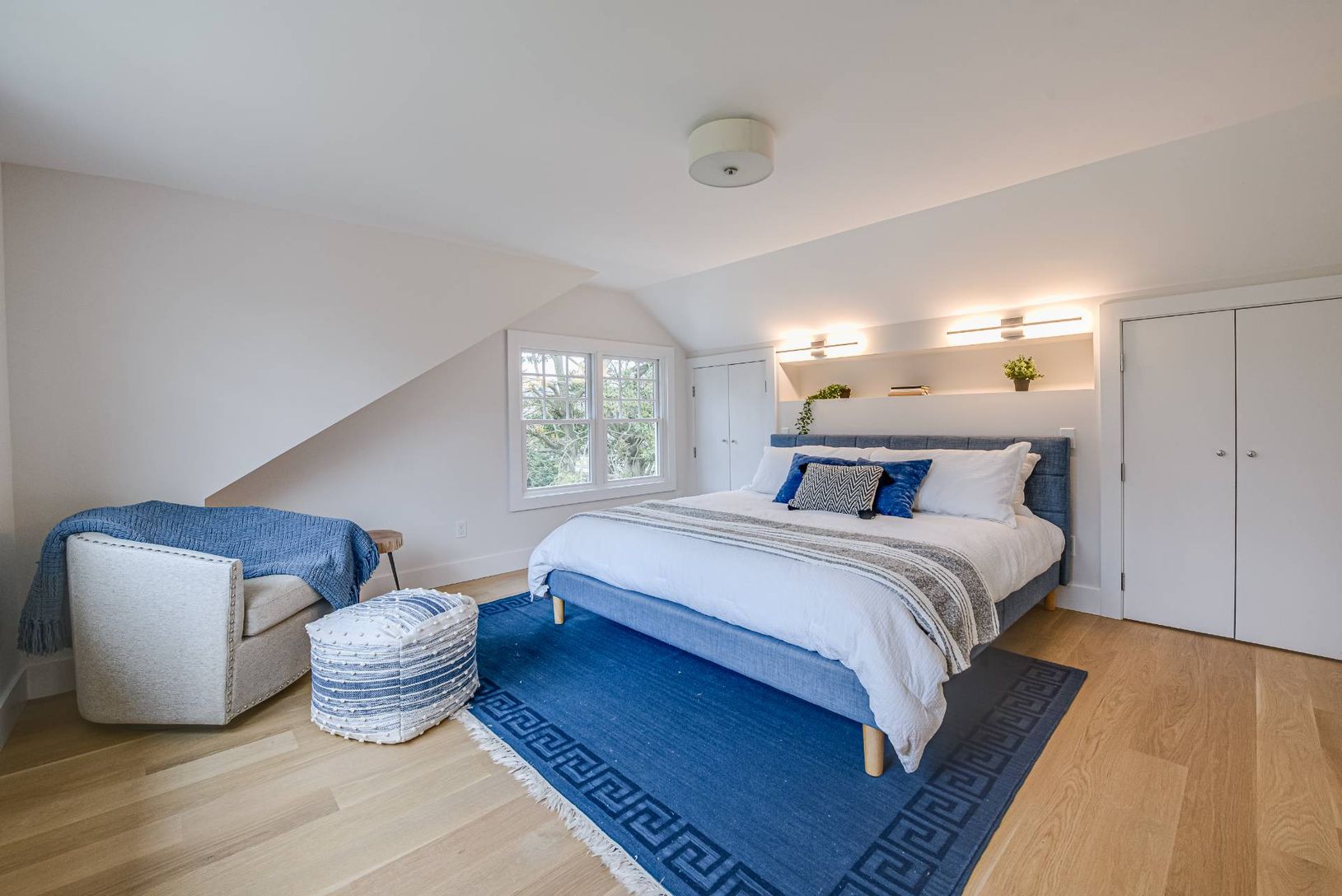 Just renovated from top to bottom, this stylish honey of a home is your move-in-ready retreat in the very center of Southampton Village. The generous front yard brings you to a covered porch and into a sunny foyer that leads either to the open-plan dining area and fully equipped kitchen flowing out to the pergola-shaded mahogany deck, or to the smartly designed living room with two ample bedrooms beyond. Upstairs, the primary suite overlooks t