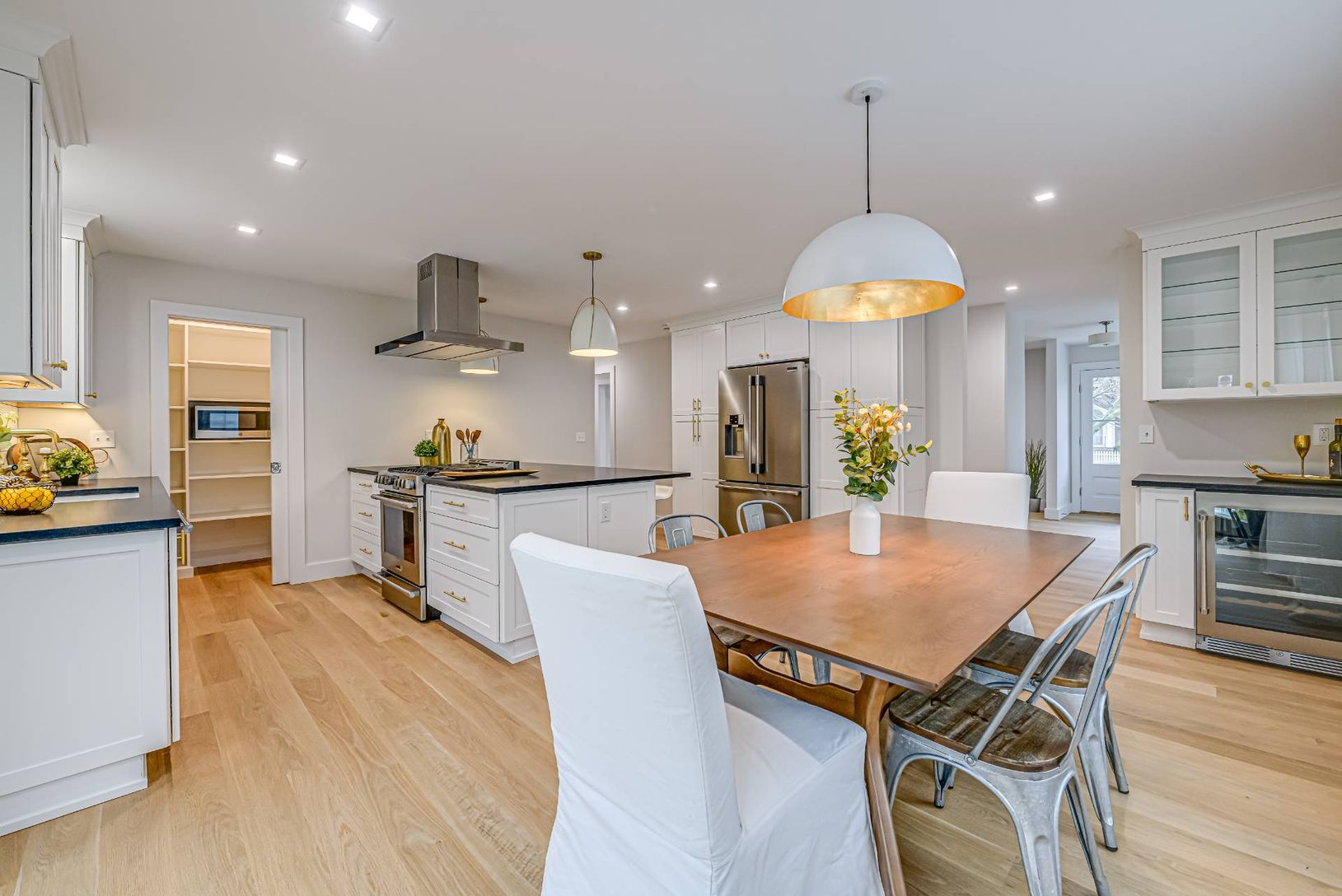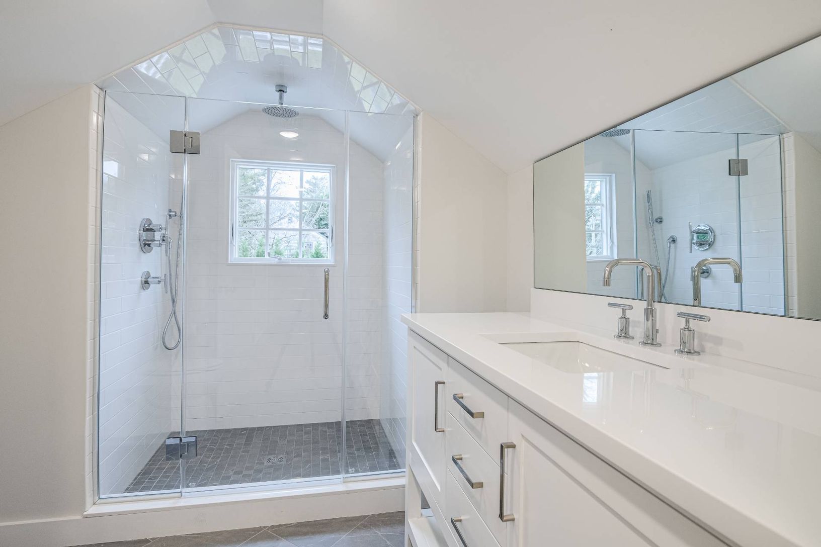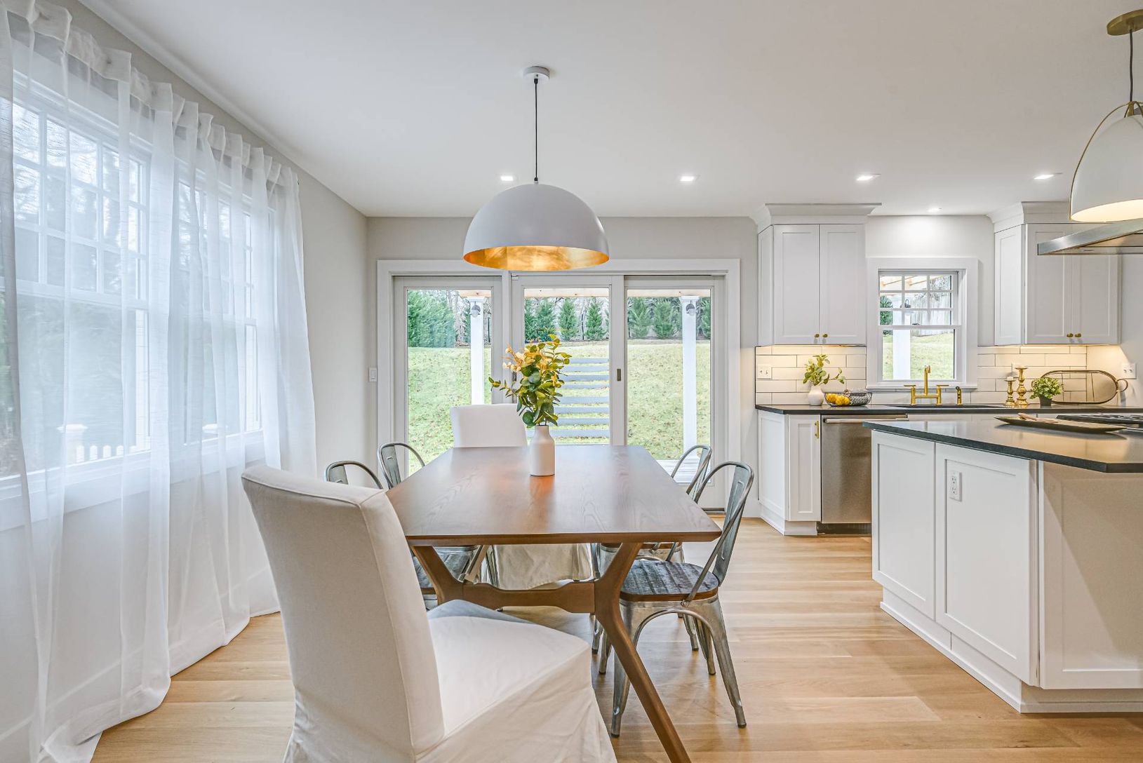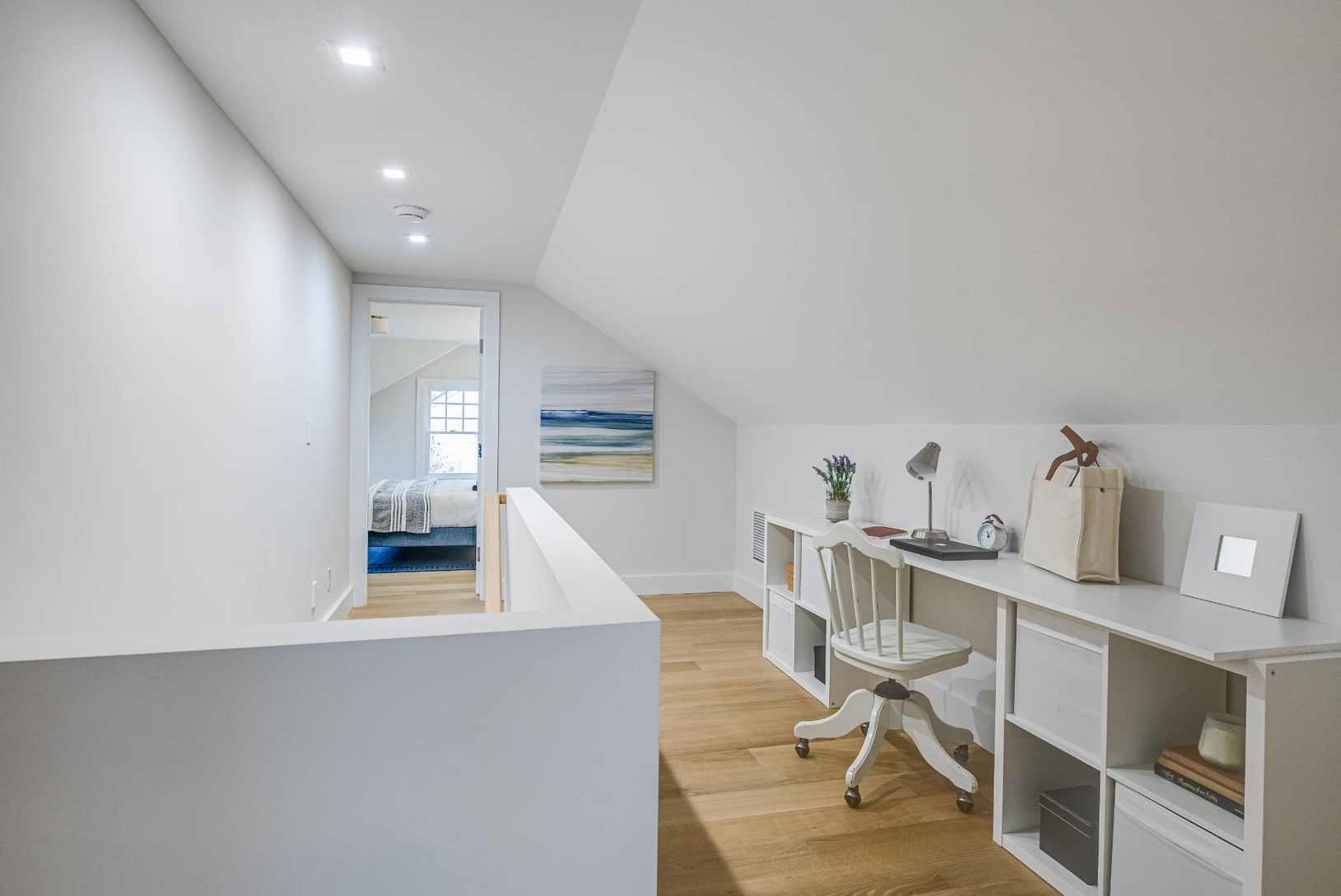 Just renovated from top to bottom, this stylish honey of a home is your move-in-ready retreat in the very center of Southampton Village. The generous front yard brings you to a covered porch and into a sunny foyer that leads either to the open-plan dining area and fully equipped kitchen flowing out to the pergola-shaded mahogany deck, or to the smartly designed living room with two ample bedrooms beyond. Upstairs, the primary suite overlooks t