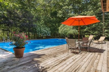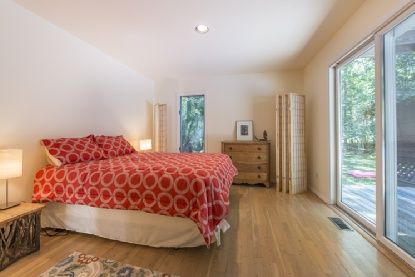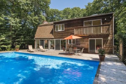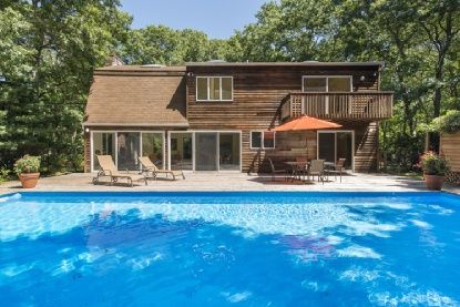 In a quiet spot in Sagaponack Village--a most coveted Hamptons location--you will discover this two-story barn-style contemporary home on 1.4+/- acres. Offering 2,200+/- sq. ft. of living space, the comfortable home has three bedrooms, including the large master suite on the second floor, and two full baths. Sliding glass doors in the master bedroom open to a private terrace. The open-plan living and dining areas on the first floor have slidin