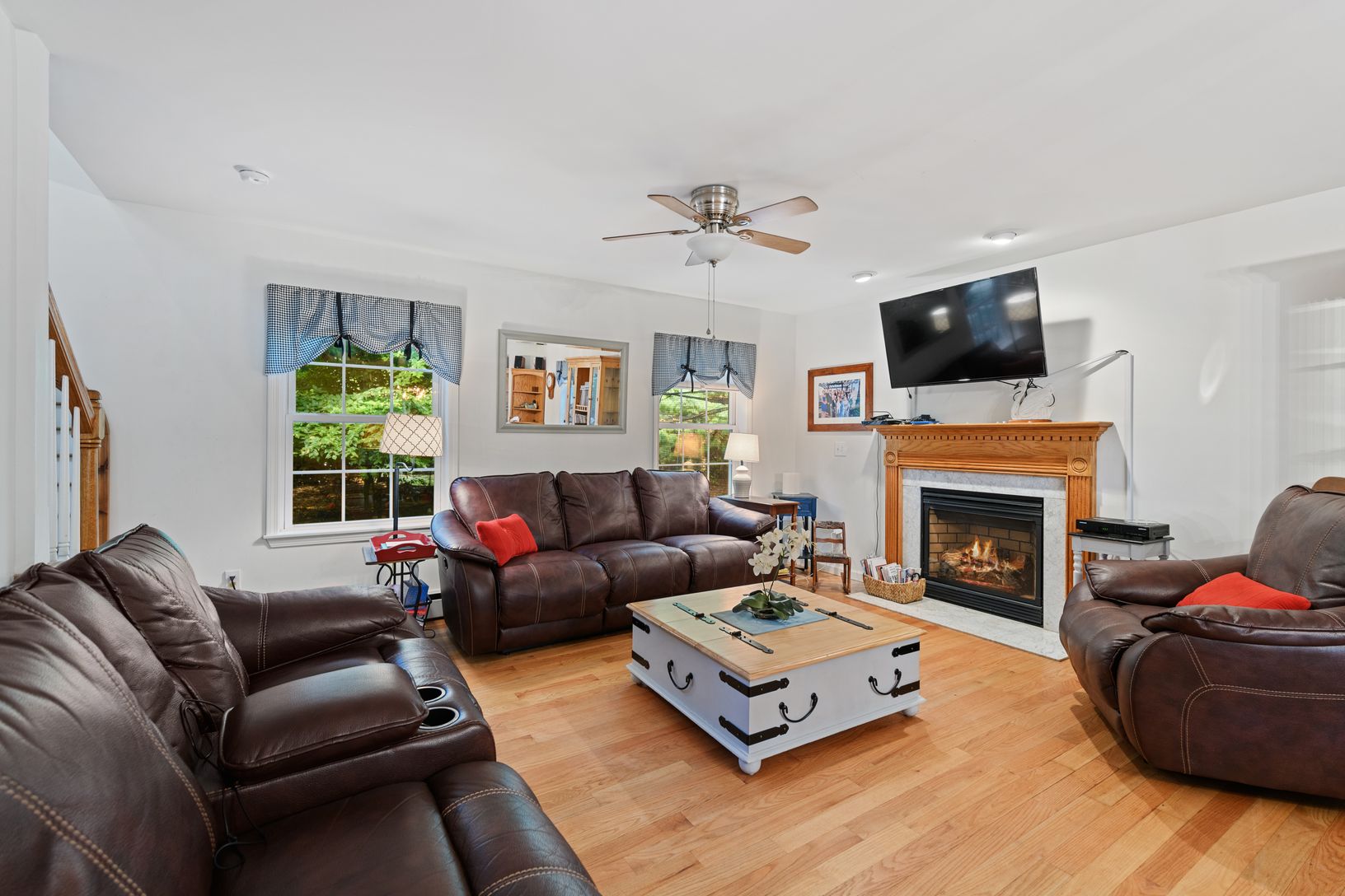At the end of a quiet street you will find this large four bedroom Traditional home on a spacious 0.54+/- Acres. The front entrance foyer greets with an abundance of light, soaring 18 foot ceiling, and a beautiful staircase. The first floor boasts an open floor plan with the kitchen, dining and living room flowing into each other. There is a gas fireplace in the living room with a lovely wooden mantle. On the other side of the first floor the