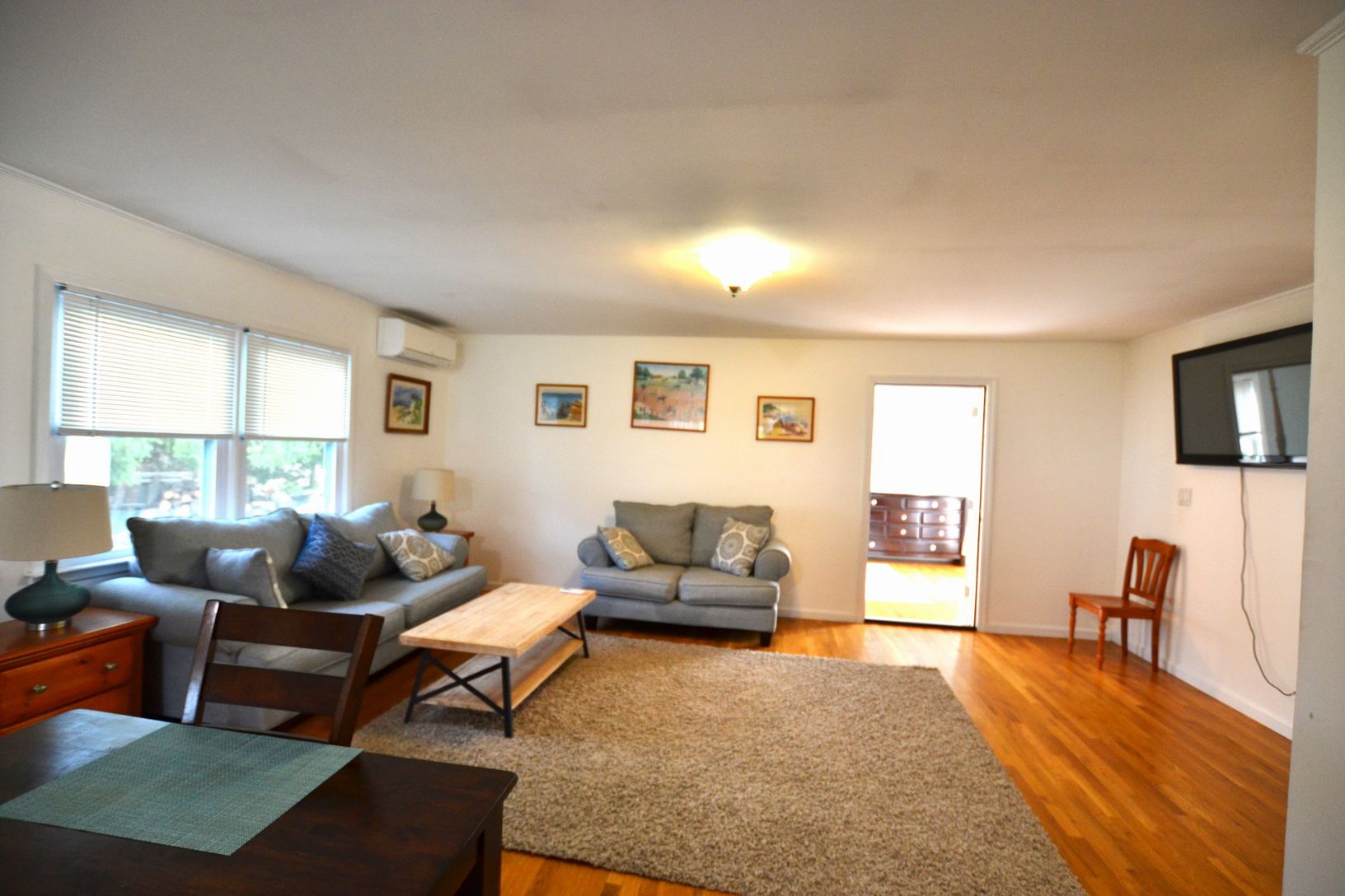 Available as a year round rental, allow the bluestone walkway to lead you to this conveniently located ground level, 1 bedroom apartment with private entrance and off-street parking. Features include open concept Living Room w/flat screen tv, Eat-in Kitchen with Dining Area. Full bath with tub/shower. Private bedroom w/french doors to back deck. Walk-in closet w/stackable washer/dryer and storage. Access to Southampton Town Beaches with pai