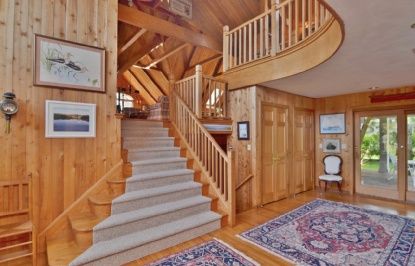 This unique, light-filled 3 story home is situated on prime acreage in the Heart of the Village south of Quogue Street. In addition to the over 5,000 square feet of interior living space, there are multiple covered and open porches and patios on which to relax and enjoy the natural beauty of the property. The home features a great room with vaulted ceiling and a double sided fireplace between the kitchen and the living and dining areas. There