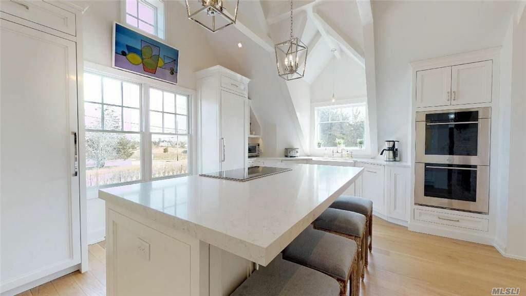Builder's own high-end complete reno South of Quogue Street. Grand gated entry leads to a special 5700 sq.ft. home w/amazing 1000 sq.ft. master suite with balcony & sitting room w/fireplace, 5 additional guest bedrooms, 4 additional well-appointed full baths. Meticulous grounds offer saltwater Gunite pool w/spa & smart pool technology. Detached 2 car garage with pool bathroom and loft space. Less than 1/2 mile to town.