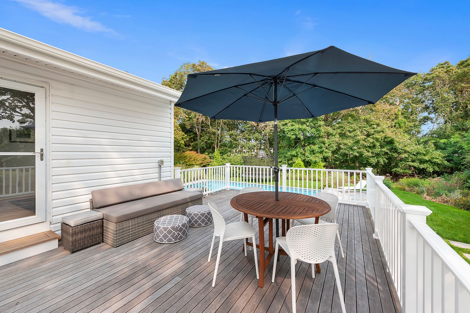Located South of the Highway in Tiana Shores Community, this chic contemporary home is your perfect East End getaway. Newly updated kitchen and baths, your turn-key home offers open light and bright floor plan, vaulted ceilings fireplace and sun room. Relax around the pool with lovely landscaping and privacy. Just around the block from the Community Tiana Shores Beach, and close to Hampton Bays Village center.