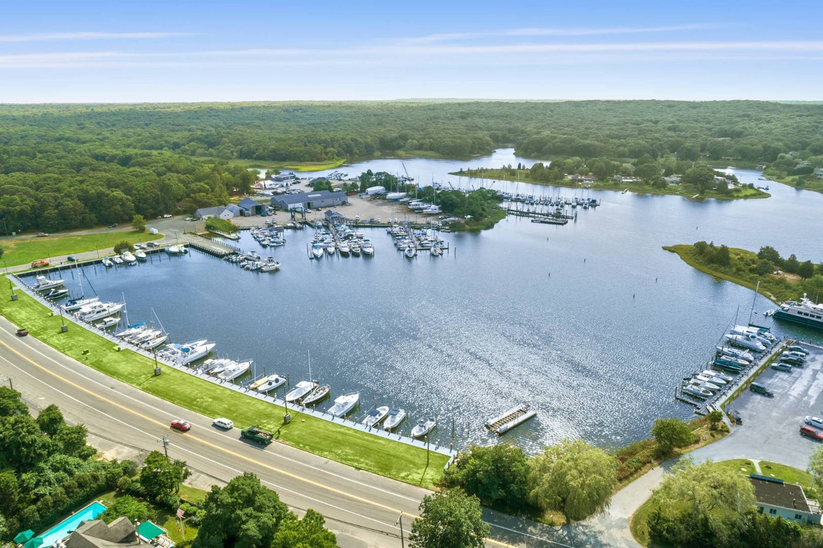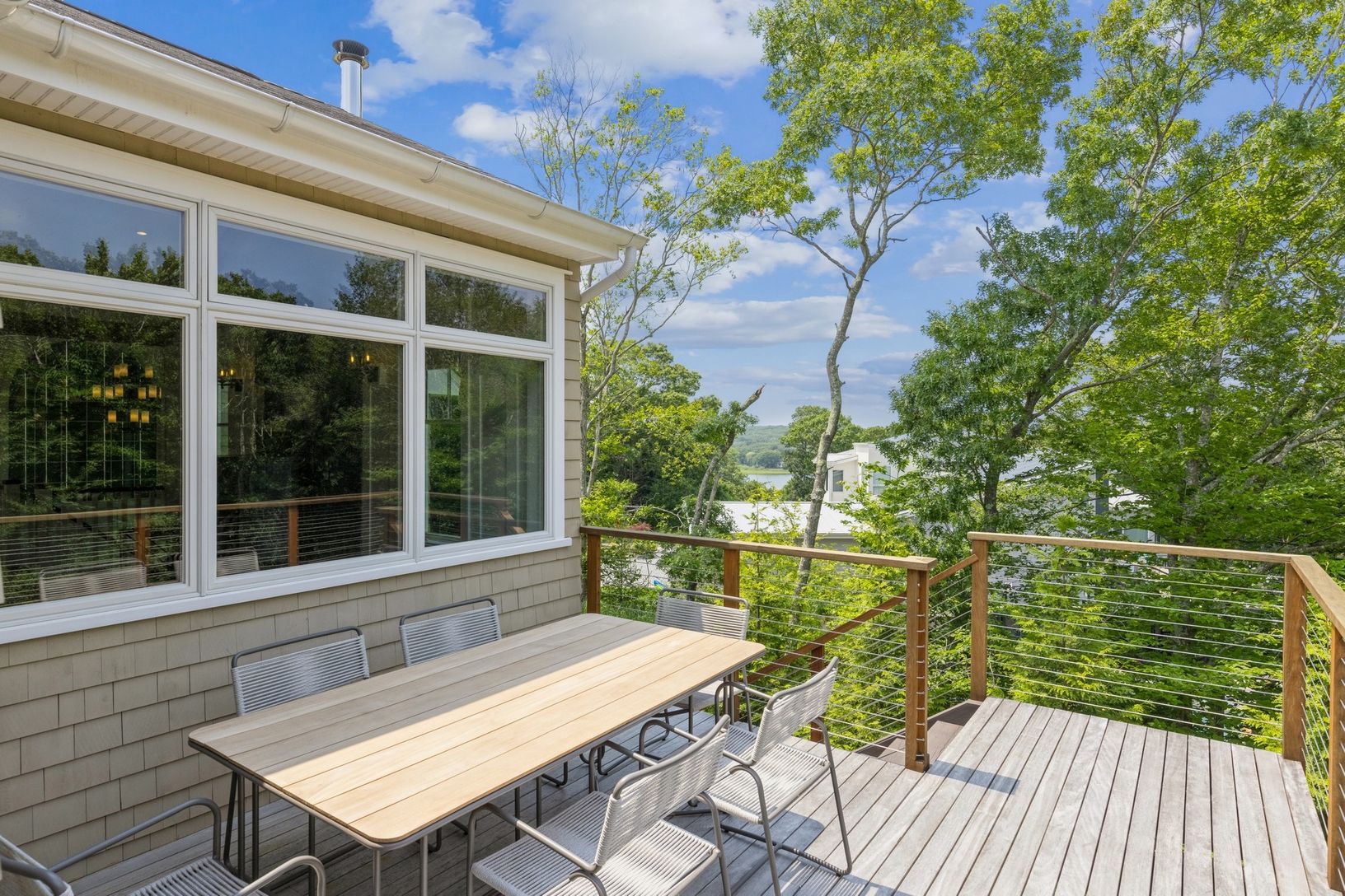This custom water view home uniquely offers privacy and accessibility. Just completely and stylishly furnished, it boasts 5 bedrooms, 7 baths, an full office, radiant heated lower level and a two car garage - perfect in every detail and pristine in condition. Three Mile Harbor marina and local eateries are within a short distance, as is East Hampton village and ocean beaches. The location is remarkably exclusive and serene - set back on a priv
