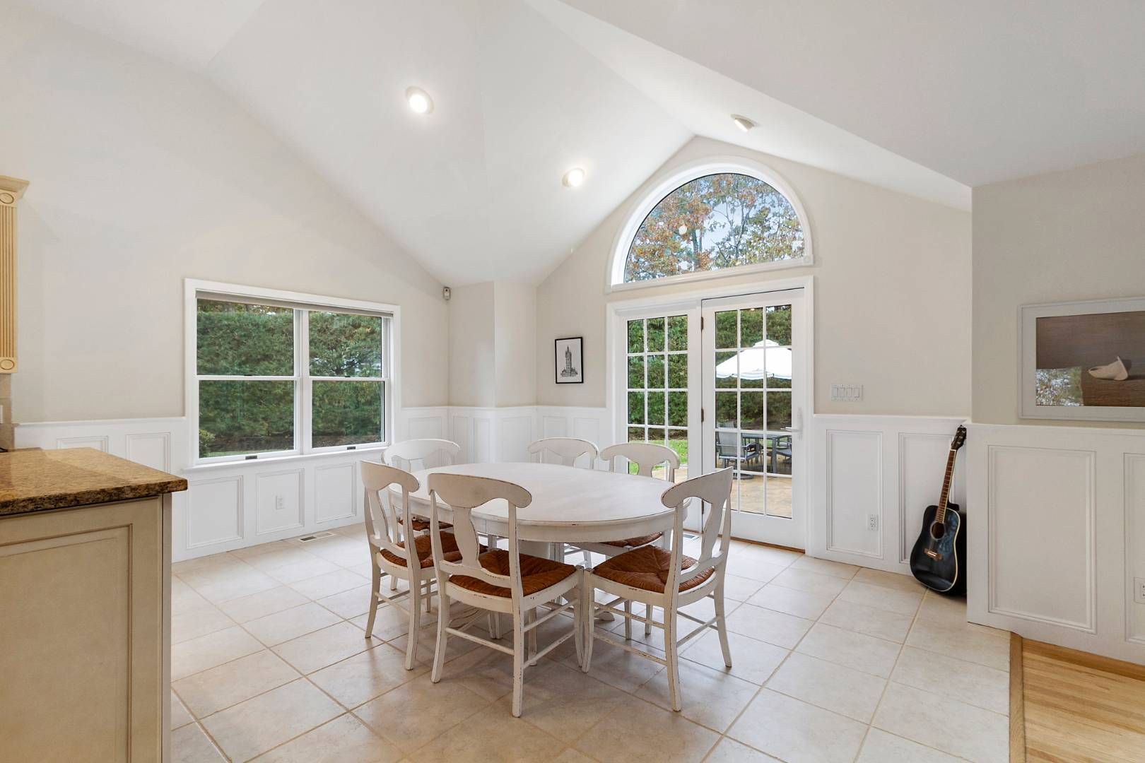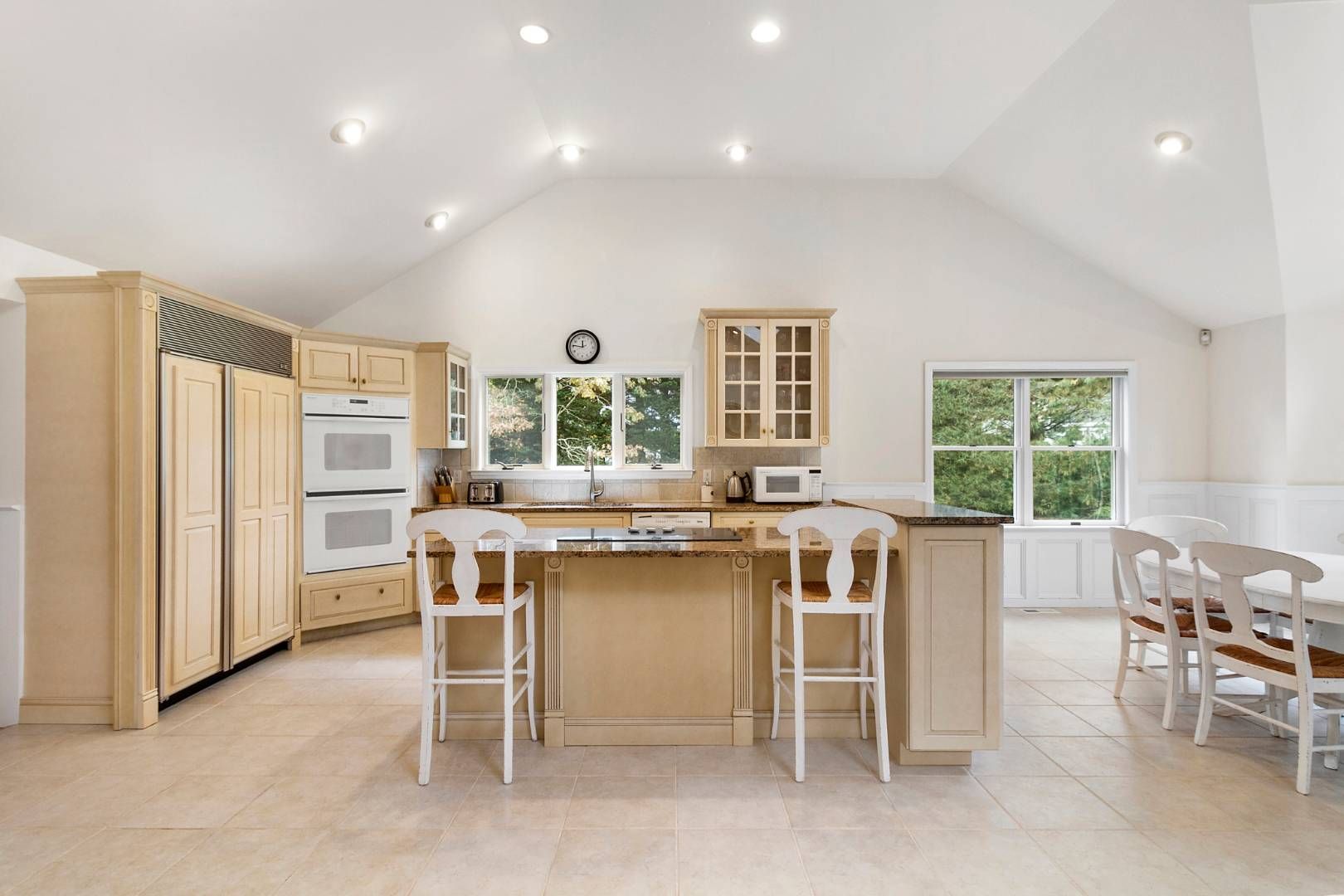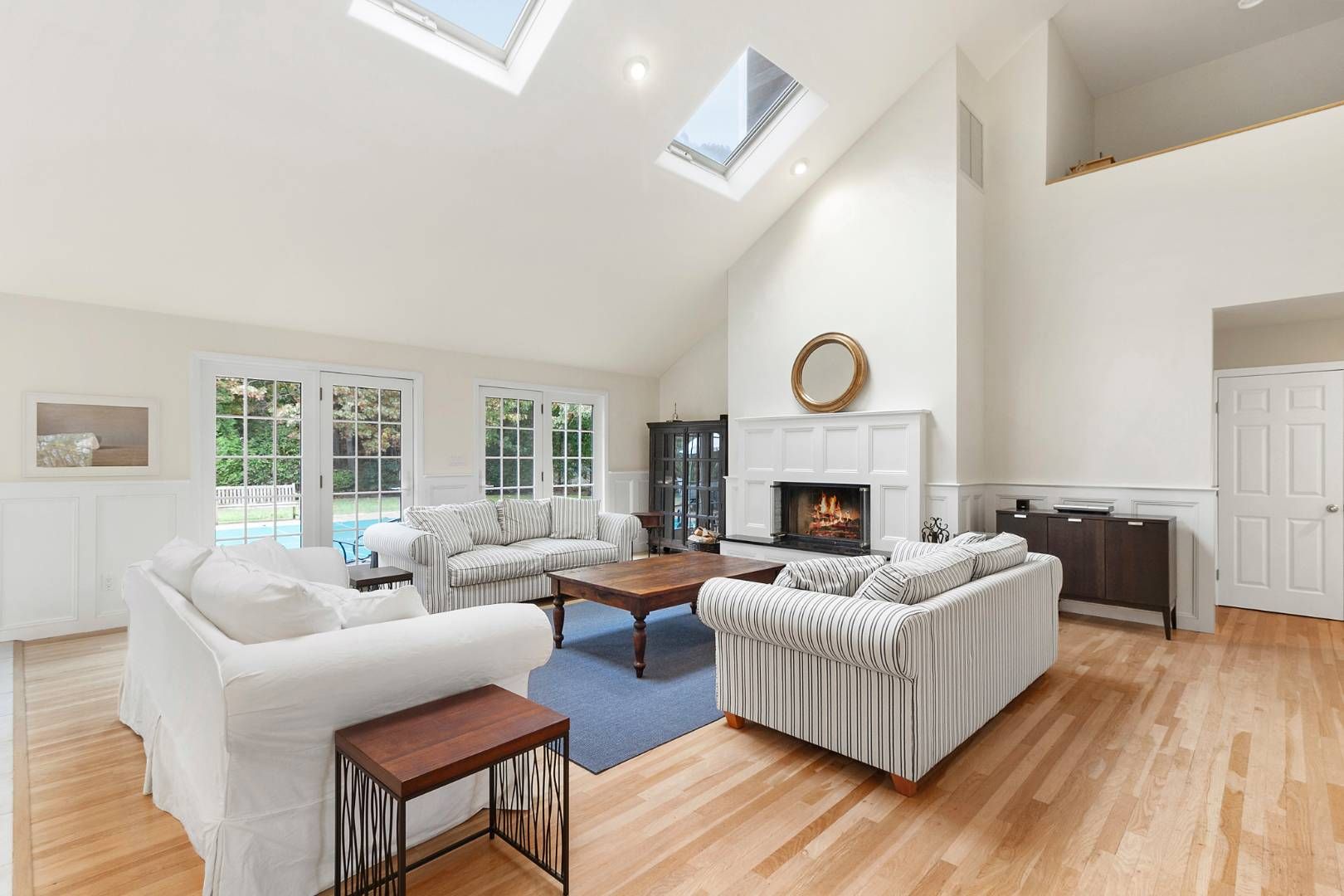 Westhampton Beach Post Modern home! Set at the end of a cul-de-sac in Westhampton Beach sits this 4 bedroom, 3 bathroom Post Modern home. Featuring an open floor plan, the eat-in kitchen seamlessly flows into the great room with vaulted ceilings and natural light throughout. The expansive great room is replete with wood floors, a wood burning fireplace, French doors and oversized windows to enjoy the views of the serene backyard. The first flo