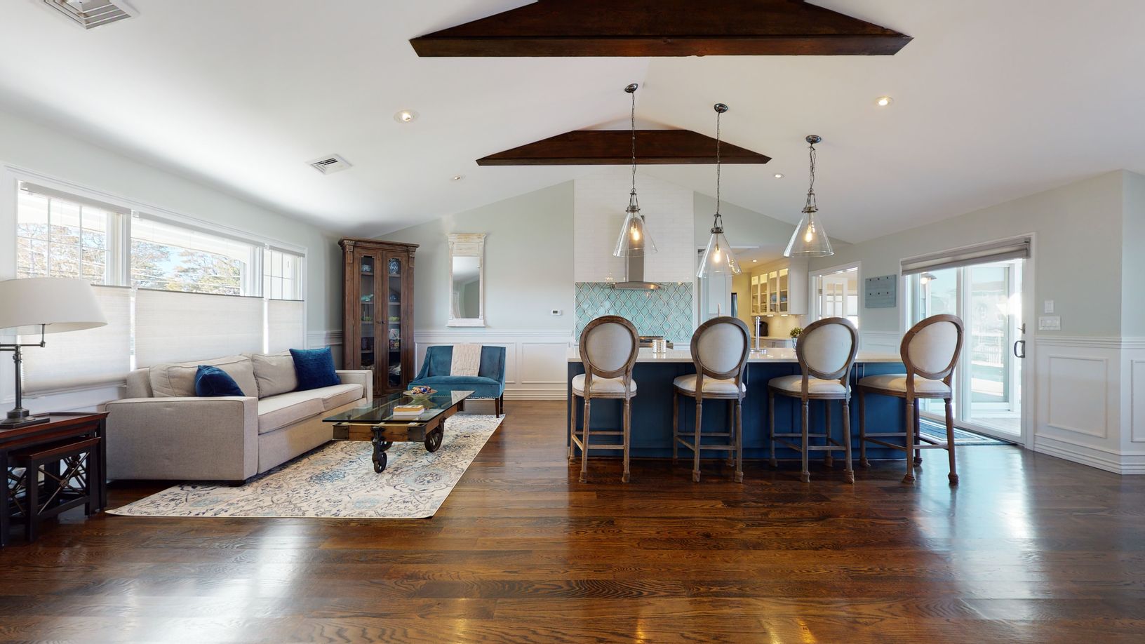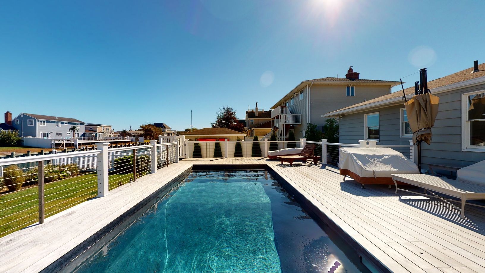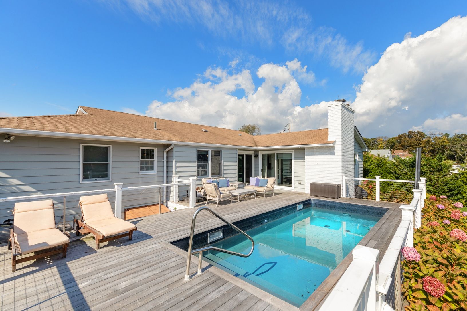 Truly turn-key house with everything you need for your stay. Paddle board on the calm open bay right off your backyard dock. Located in a private beach community. This 5 bedroom, 2.5 bath expanded ranch offers an open floor plan and has been newly renovated throughout. This beautiful home offers a brand new high end kitchen, new bathrooms, hardwood floors, new heated pool, new IPE decking. Everything has been done in high end craftsmanship and