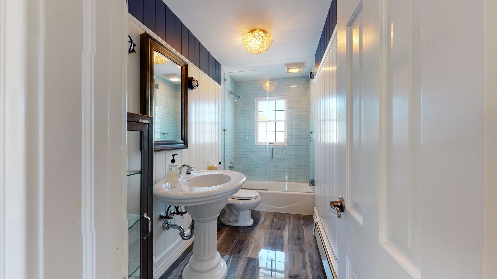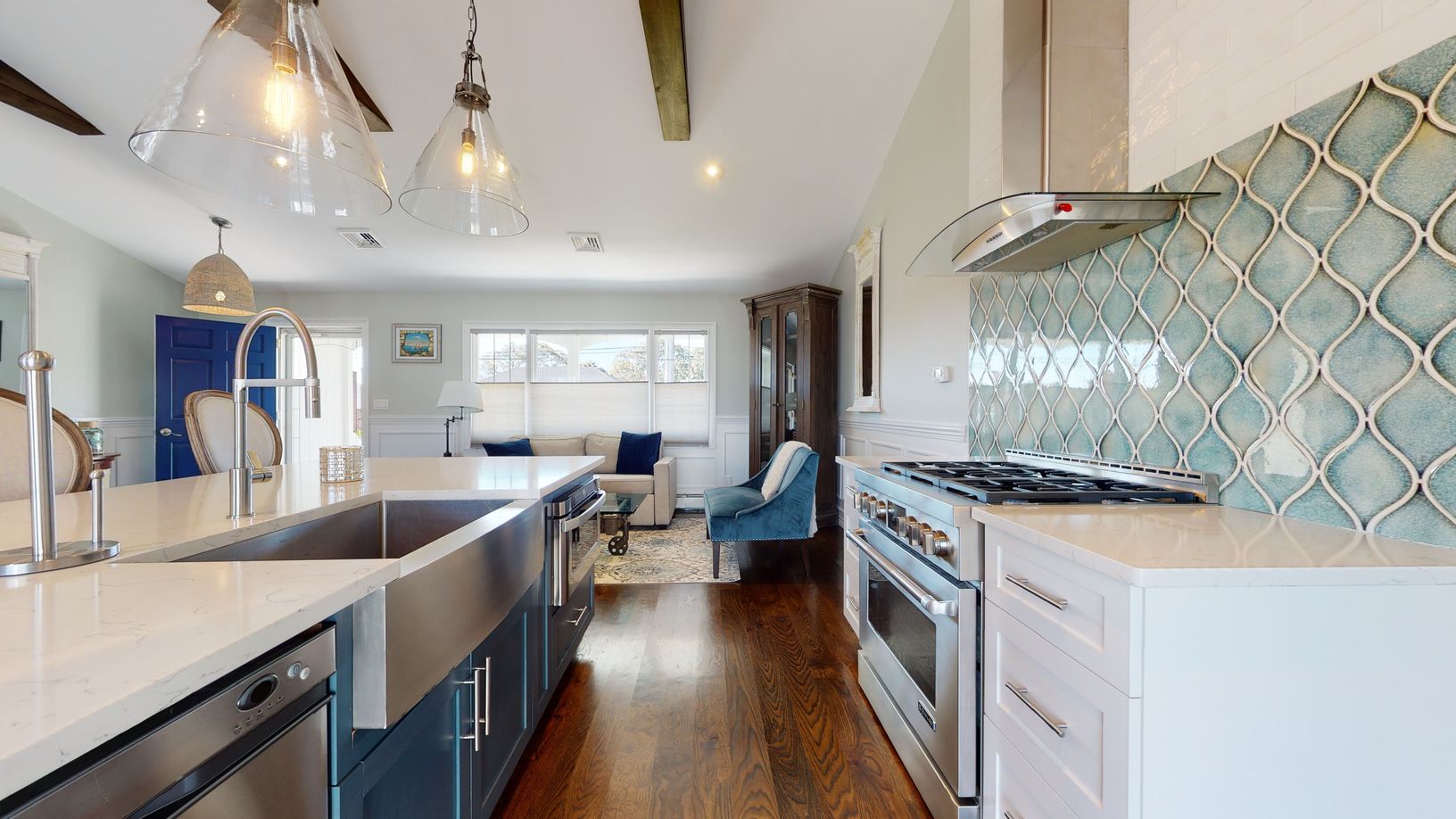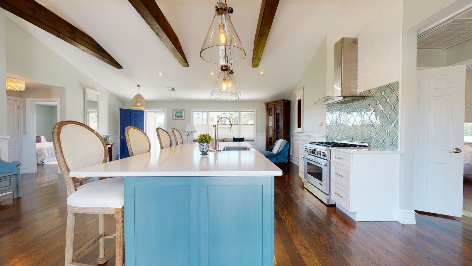 Truly turn-key house with everything you need for your stay. Paddle board on the calm open bay right off your backyard dock. Located in a private beach community. This 5 bedroom, 2.5 bath expanded ranch offers an open floor plan and has been newly renovated throughout. This beautiful home offers a brand new high end kitchen, new bathrooms, hardwood floors, new heated pool, new IPE decking. Everything has been done in high end craftsmanship and