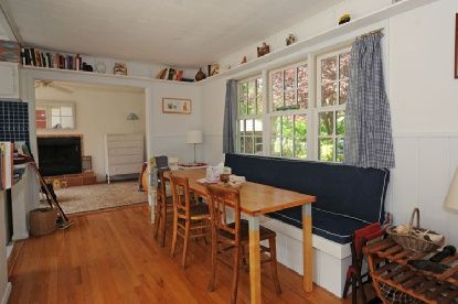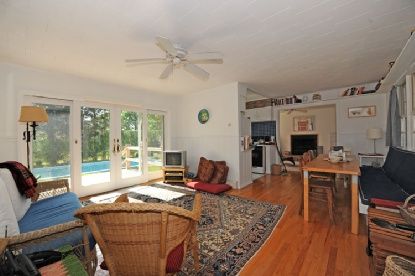 Shingled cottage with two bedrooms, two baths, and a pool. The property is conveniently located just outside the village with water at end of the street. The living room has a gas fireplace.