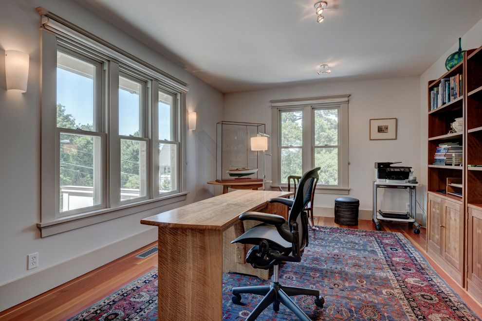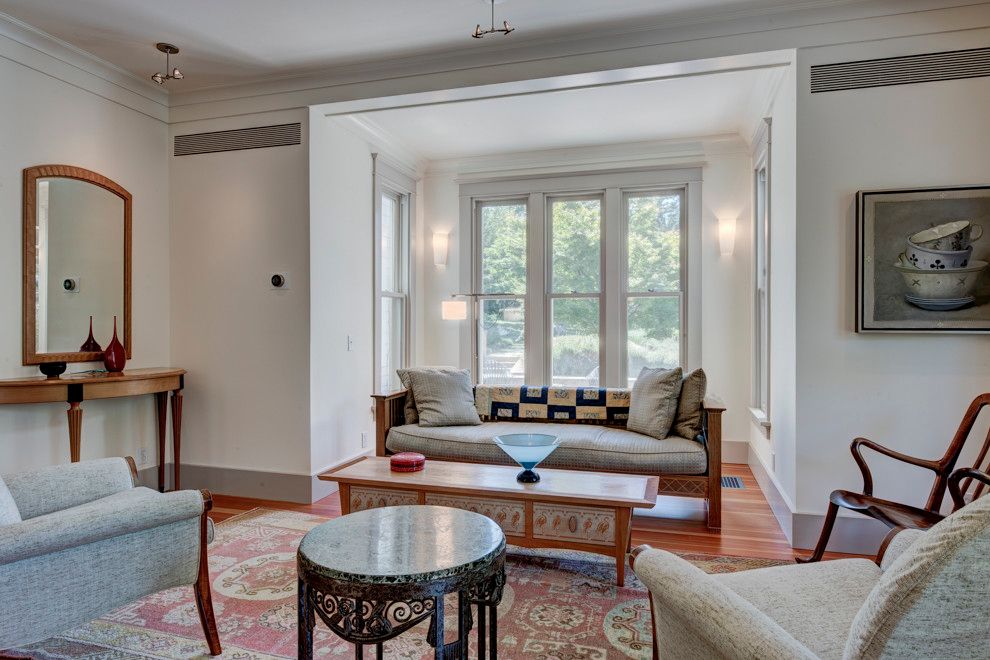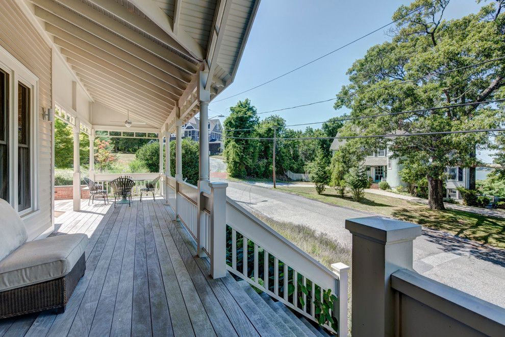 Exquisitely restored c.1885 Victorian cedar clapboard sided home sited high on a hill along Bishop's Row in Shelter Island Heights with a water view of Shelter Island Sound. Rebuilt as new by Lampietti Fernandez Architects and Reich Eklund Construction this 4 bedroom, 2.5 bath home enjoys the finest quality throughout and many beautiful features including an open design in the living room and dining area which has access to both a covered fron