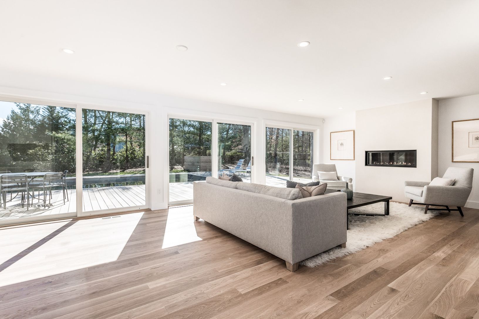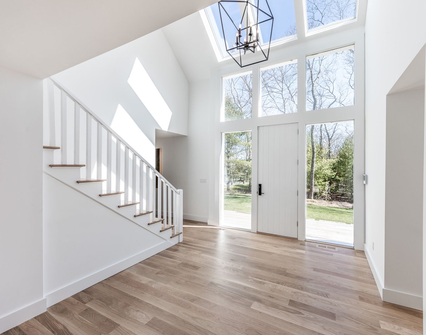 The Northwest Modern-Barn. This top-to-bottom renovated modern barn is located on a quiet street in Hands Creek Harbor. You are steps from the beautiful sandy beach and only moments from the village of East Hampton. Situated at the top of a hill, this completely gut renovated energy-efficient barn is the perfect fit for you to call home. Entering through the double height with floor to ceiling glass, you are engulfed by the light-filled foyer.