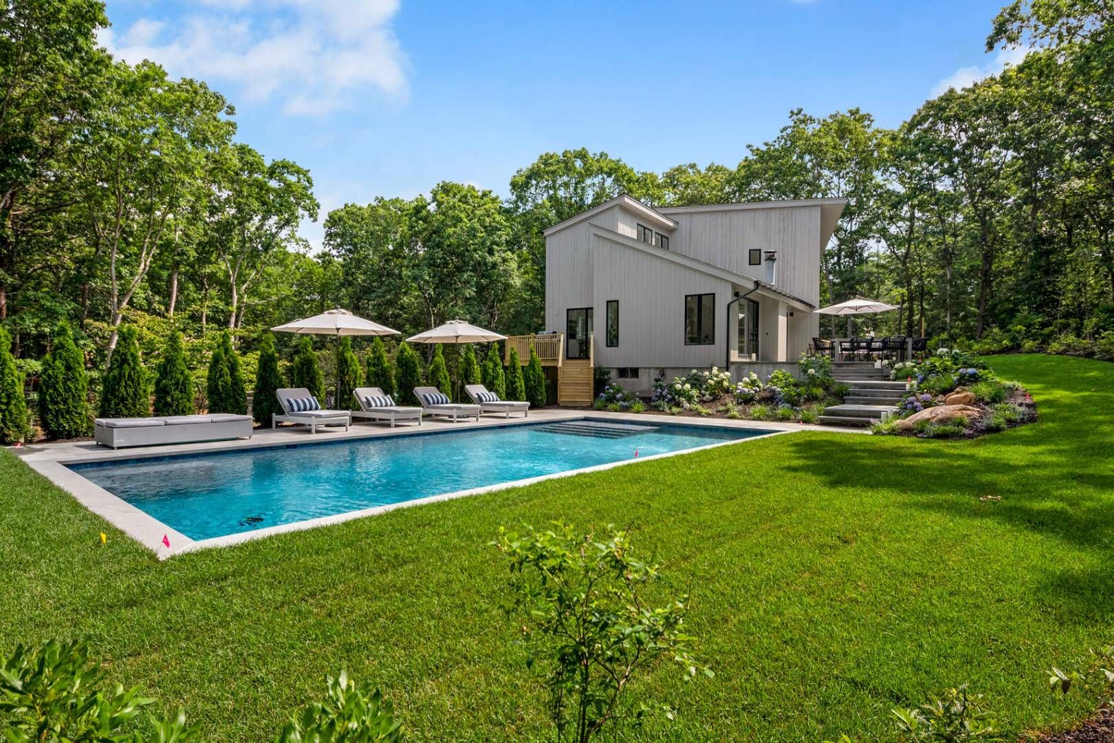 Thoughtfully renovated and stylishly designed this three-bedroom, three-bathroom home located in the tranquil setting of East Hampton's Northwest Woods is only eight minutes from the village center and the best of East Hampton. 3D Virtual Tour Link in Listing.