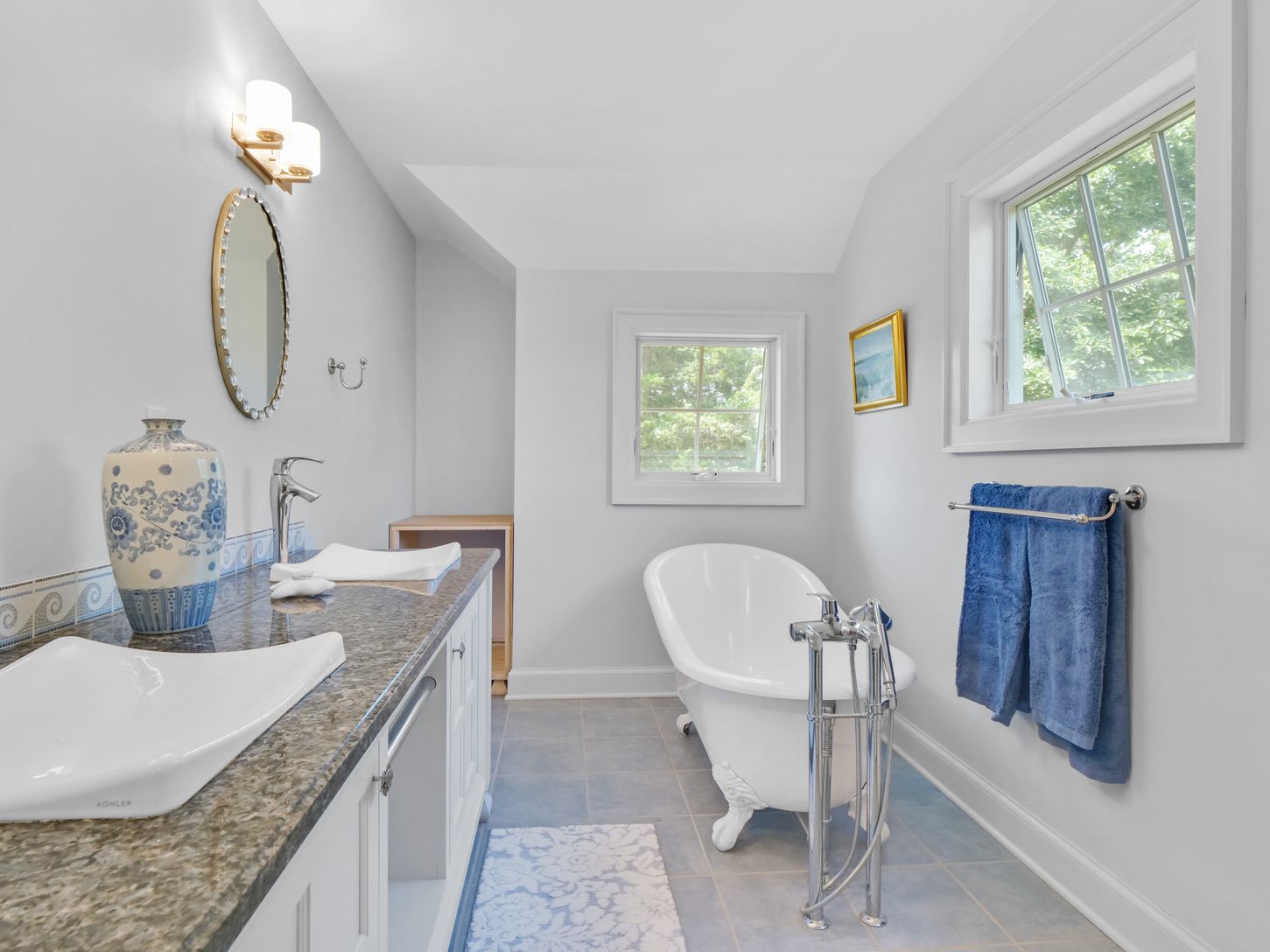 Lovely home on the water in Fish Cove. Beautifully done kitchen with custom cabinets, large island for entertaining, and new appliances. A light filled first floor with large windows and doors includes a great room for dining, watching TV, sitting by the fireplace, or enjoying the view overlooking the water. Additionally enjoy the convenience of a bedroom, full bath, and laundry. Upstairs is an elegant primary suite with a fabulous bath. It sh