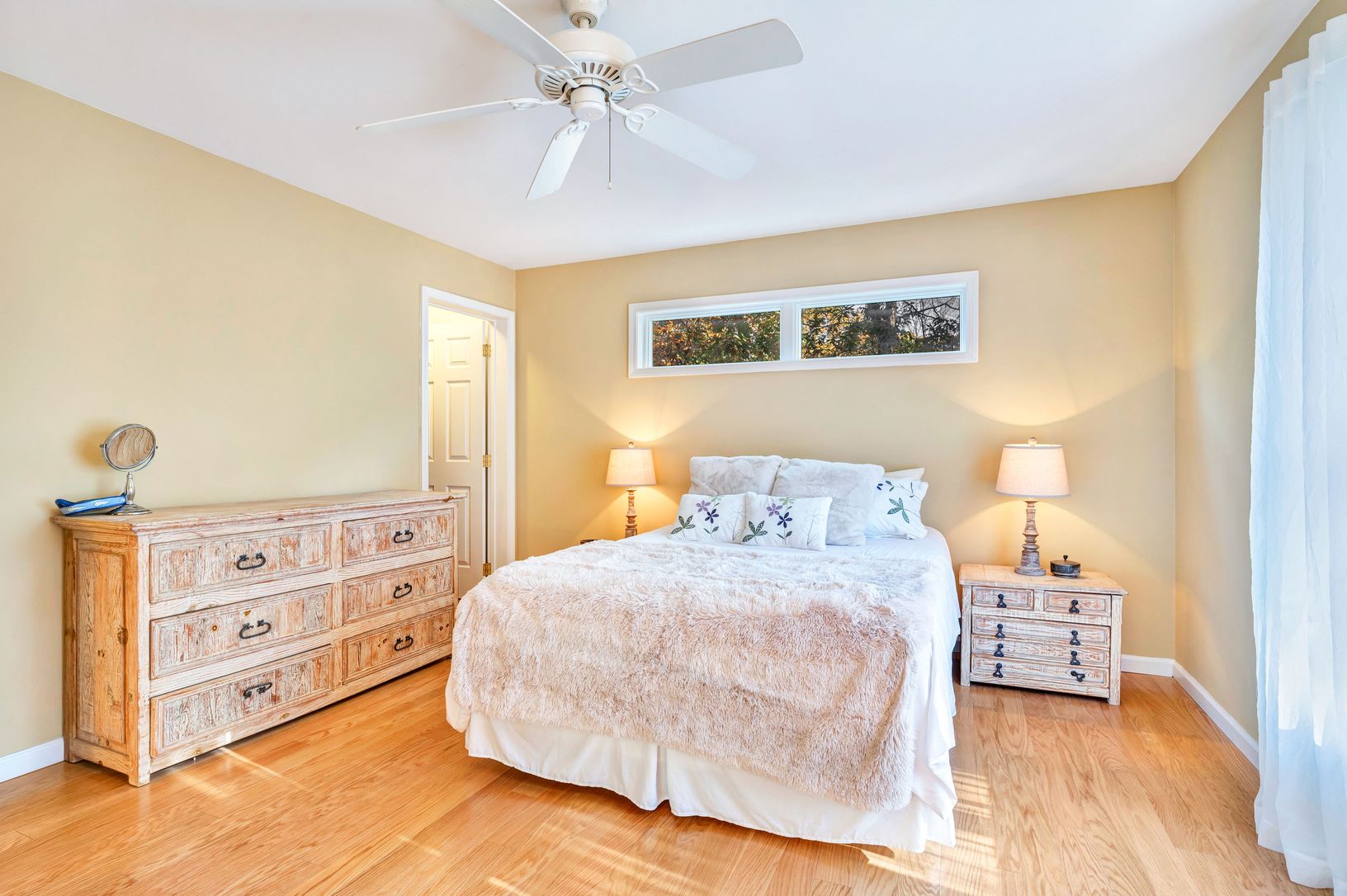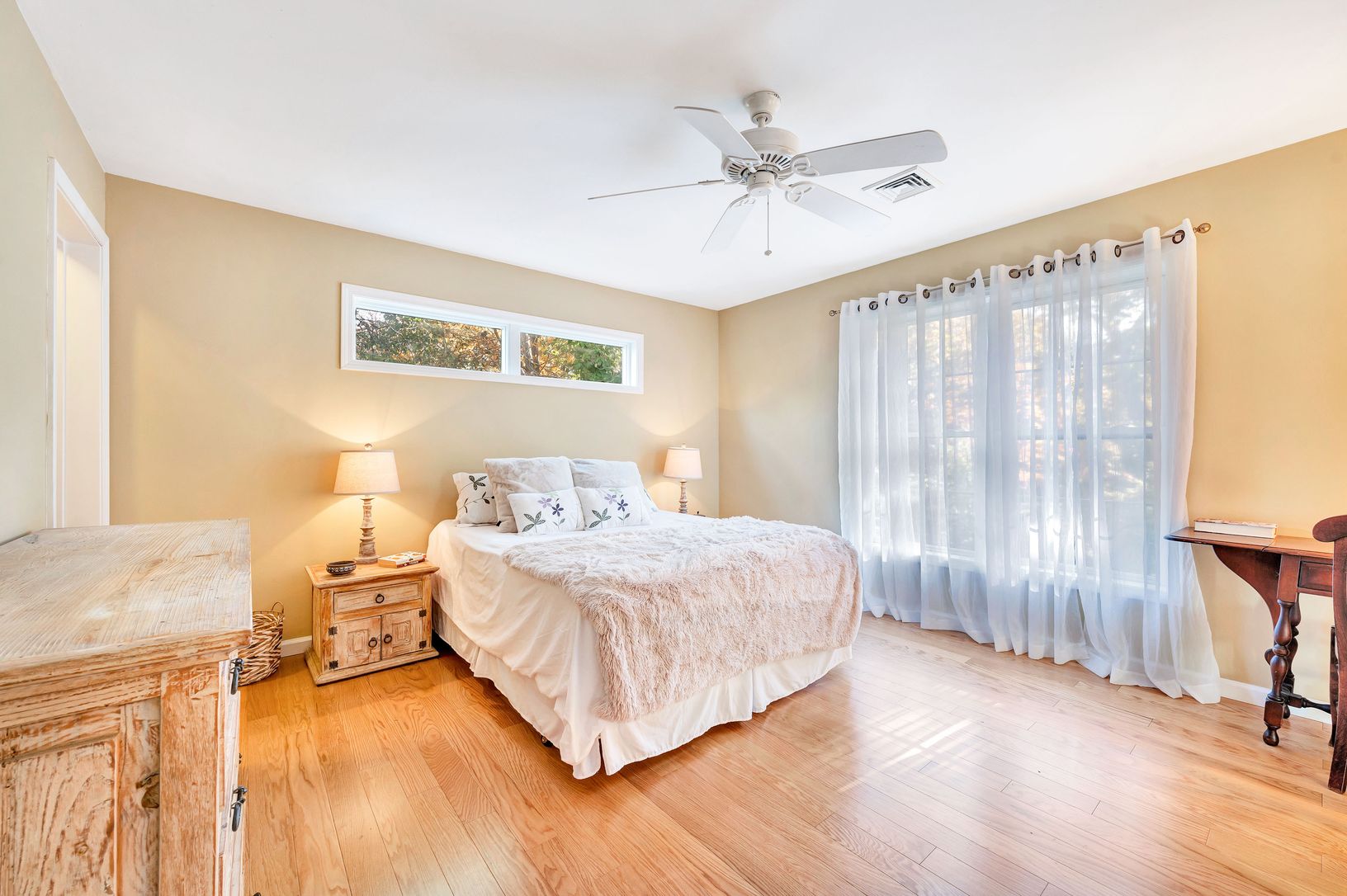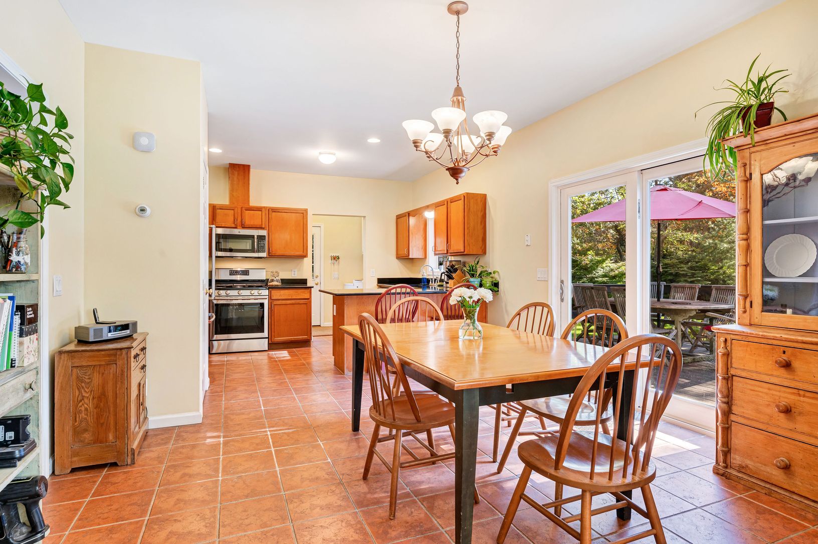 New on the market, located on a quiet street in Springs, is this lovingly maintained traditional 1,950 sq.ft. home. The first floor offers welcoming foyer, open kitchen and dining room with sliding glass door leading to wooden deck, spacious living room with gas fireplace, family den/TV room, powder room and conveniently also laundry/mud room. Second floor boasts an en-suite primary bedroom with walk-in closet, two guest bedrooms and a separa
