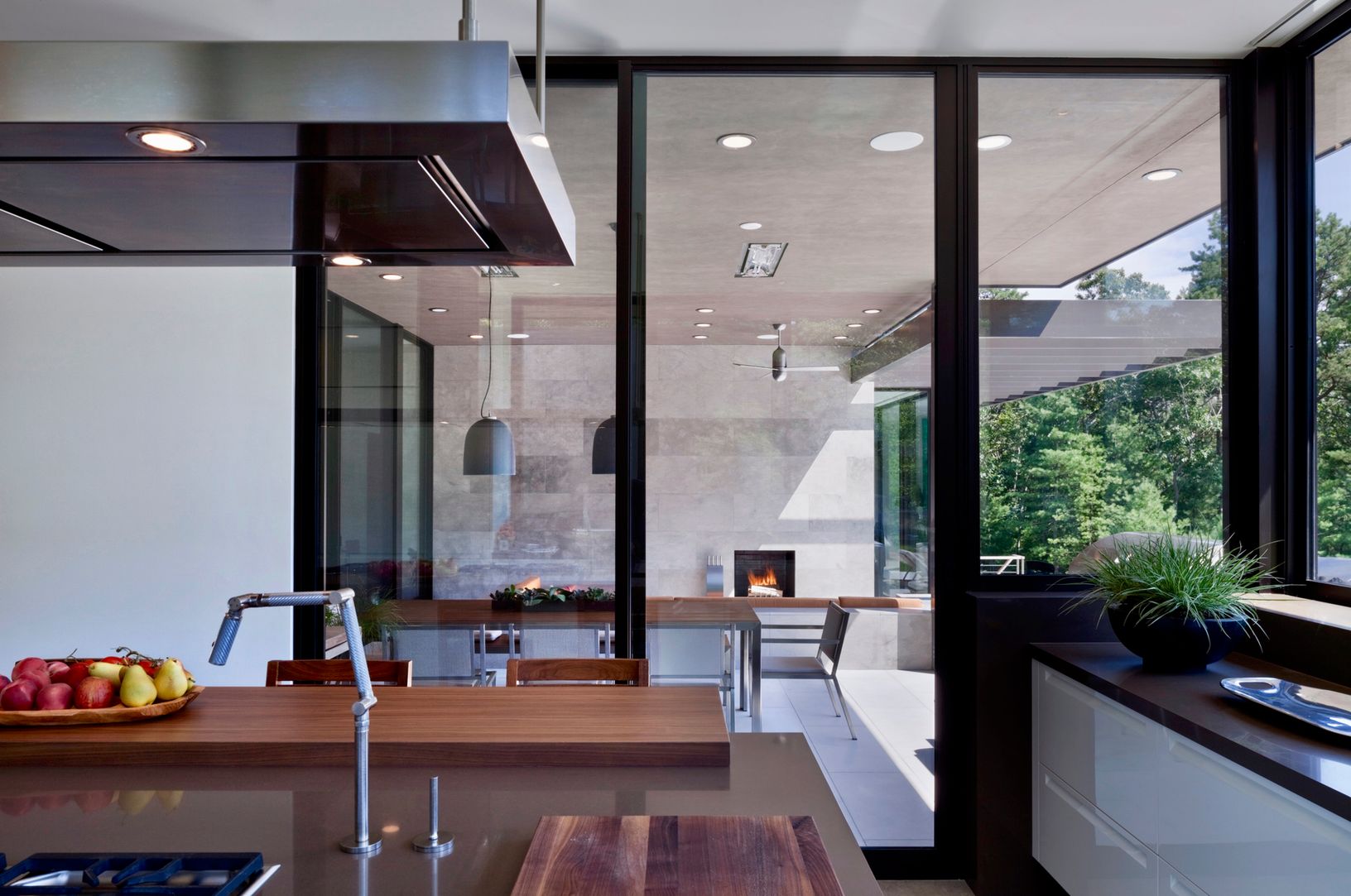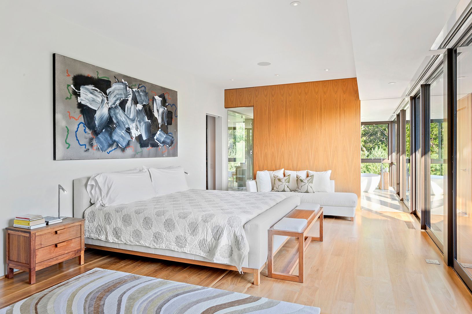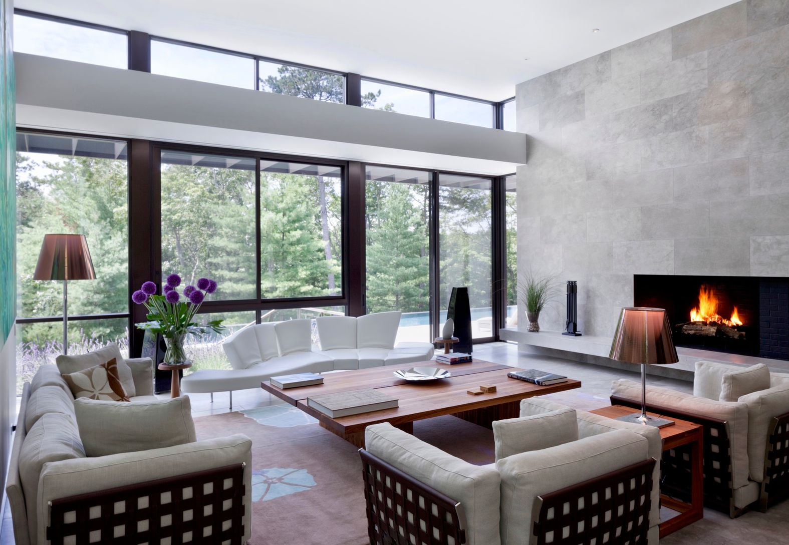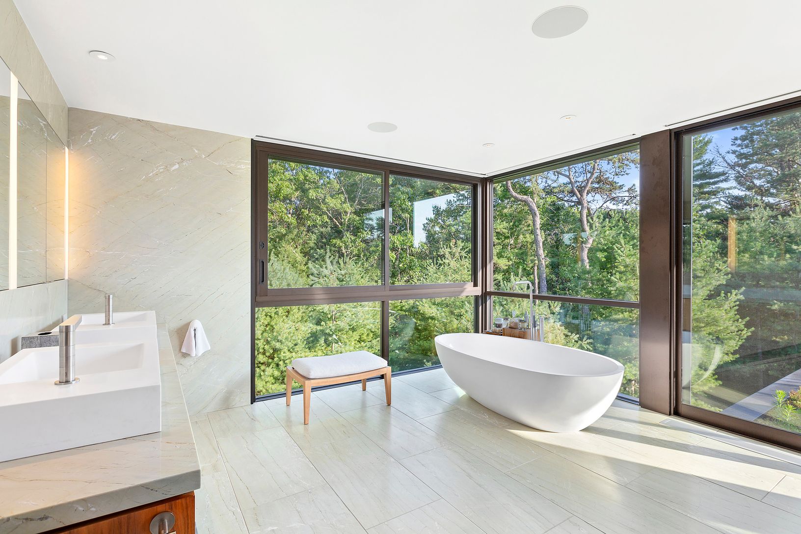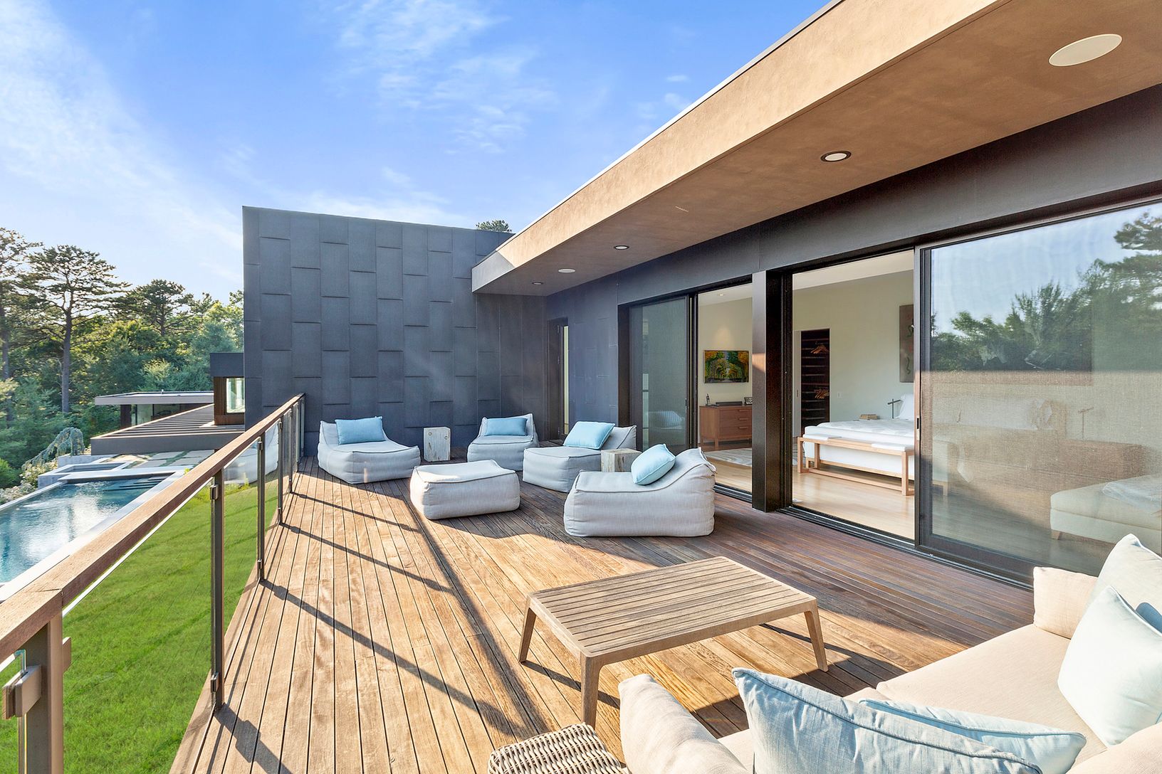 Situated in the East Hampton, on totally private 3.25 acres, this incredible residence was impeccably designed by Marmol-Radziner and located on a gently sloping site at the top of a hillside. From the street, the exterior profile is horizontal and unobtrusive. Upon entering the house, the layering of the interior volumes becomes apparent and the house opens up to expansive views of the surrounding zen-like grounds and tucked away tennis court