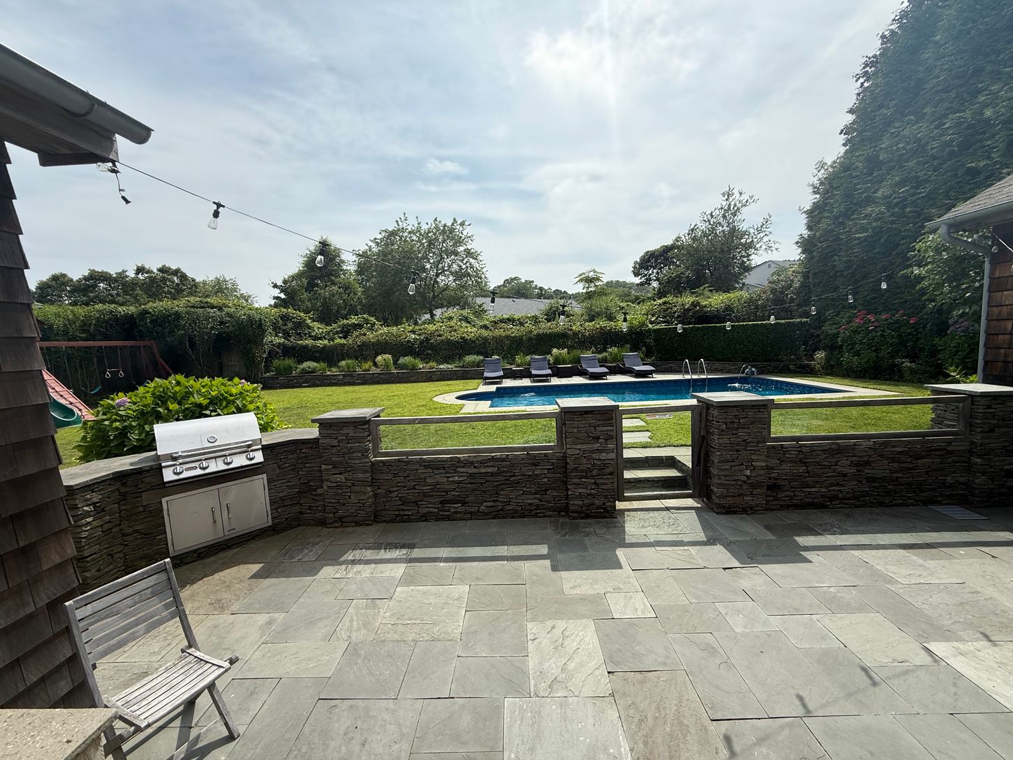 Beautifully landscaped with indoor and outdoor living areas. Newly renovated family friendly home with central air conditioning, heated pool, outdoor shower, built-in gas grill, gourmet kitchen, swing set and a club house for kids, comfortable atmosphere. This house is located near scenic Montauk Harbor, golf course, and beaches. There are NO stairs in this house,