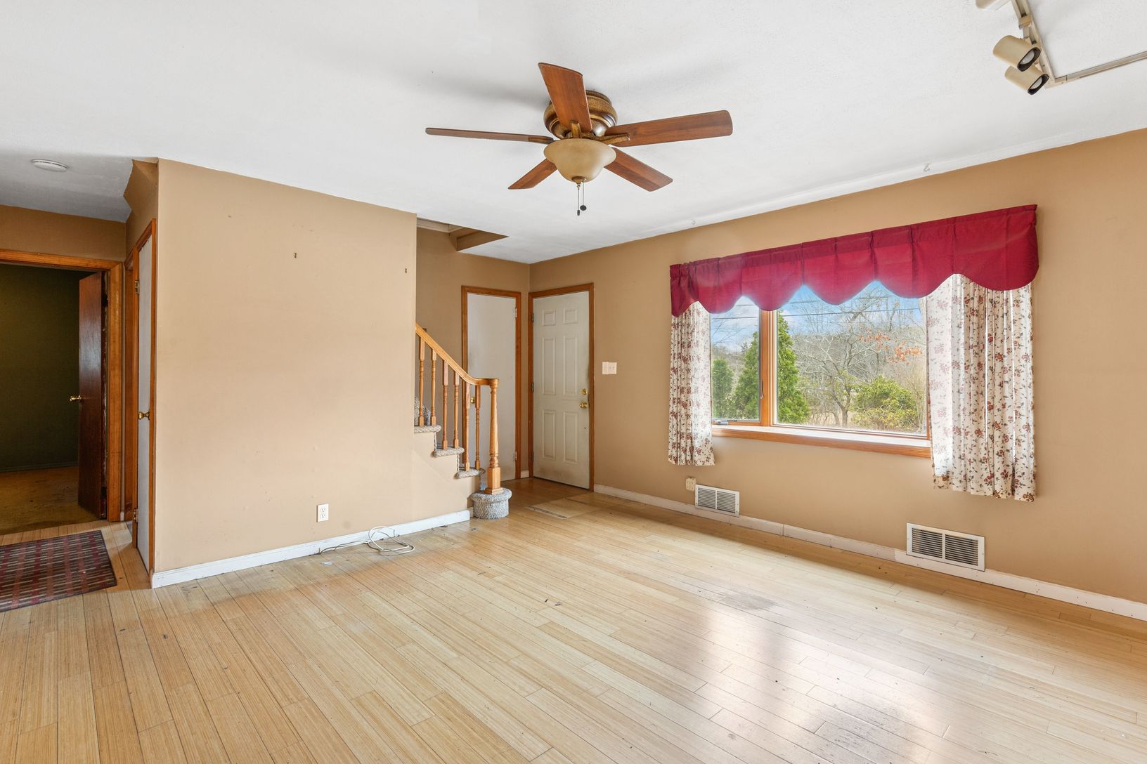 Bring your ideas and make this 4-bedroom, 1.5-bathroom Cape Cod your own! Nestled on a .26-acre wooded lot, this home offers a rare opportunity to create your dream space in a peaceful, natural setting. With a solid structure and classic layout, this diamond in the rough is ready for a new chapter. Inside you will find sun-filled rooms, hardwood floors, and a cozy atmosphere waiting to be reimagined. The flexible floor plan allows for creative