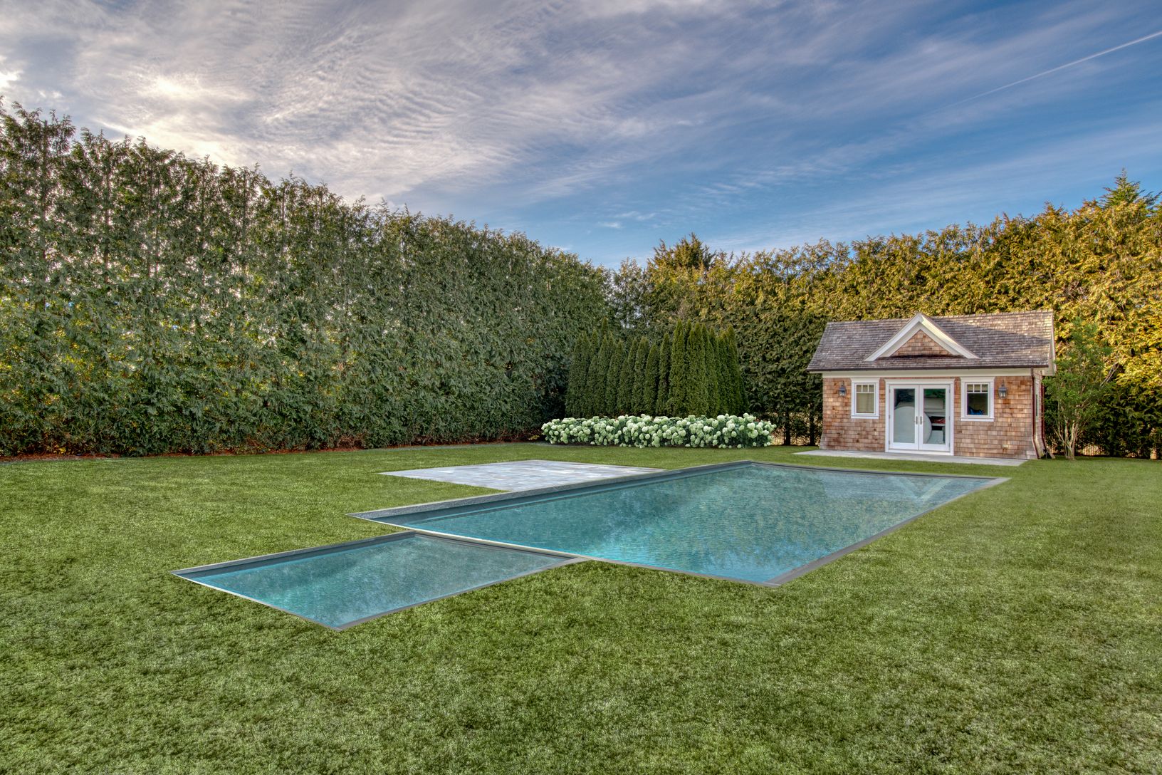 Enjoy all the Hamptons has to offer in this stunning Amagansett Lanes home only a stone's throw to ocean beaches. This Farrell construction house offers an open floor plan and spacious rooms for all. Upon entering the double-height foyer, one's eye will be drawn outward towards the back of the house which is lined with glass doors that lead out to a stunning private backyard with a heated gunite pool and pool house. Upstairs the primary bedroo