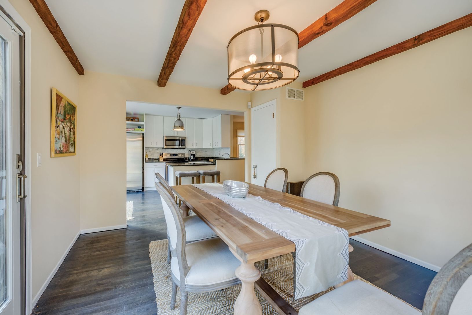 Set back from a conveniently located street in East Hampton, up a winding driveway, this renovated two-story saltbox has enjoyed many upgrades. Sited on .55+/- acre with a big backyard, the comfortable, inviting home makes the most of its 2,000+/- sq. ft. of space. Enter to a cozy living room with wood-burning brick fireplace; adjacent is the renovated kitchen with new granite countertops, stainless steel appliances by Samsung, marble subway t