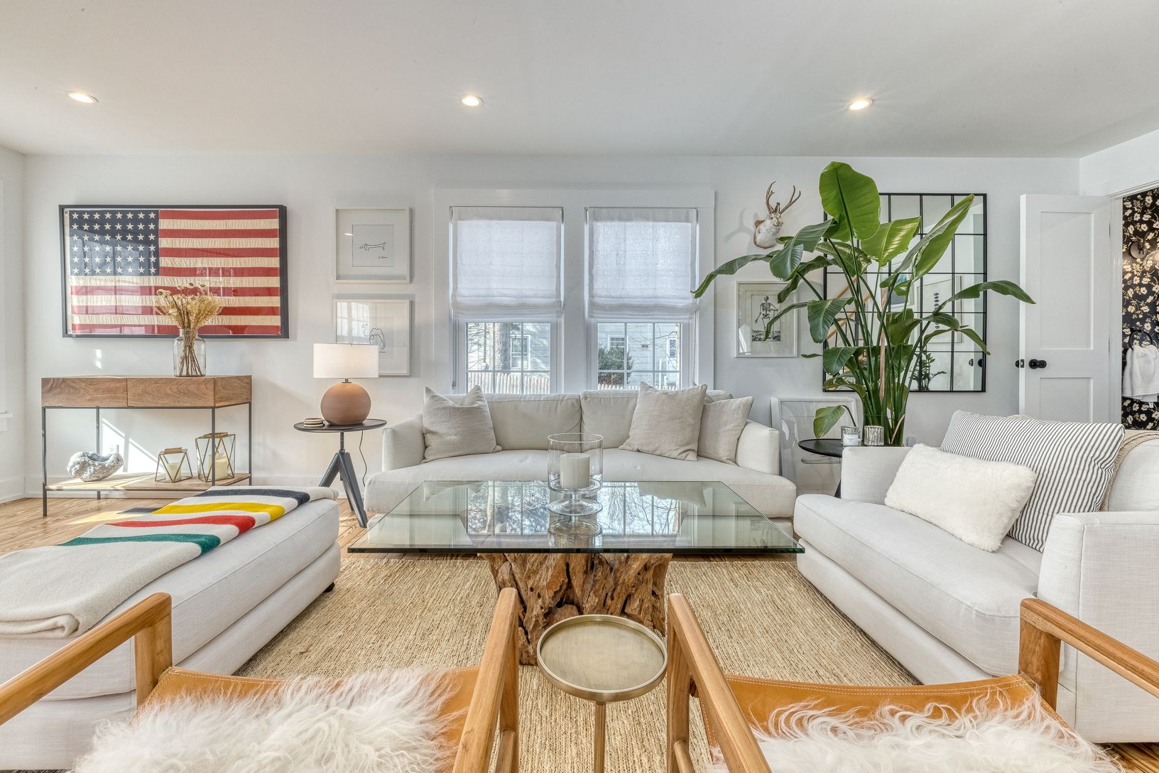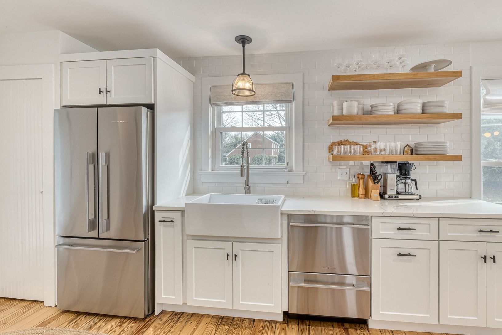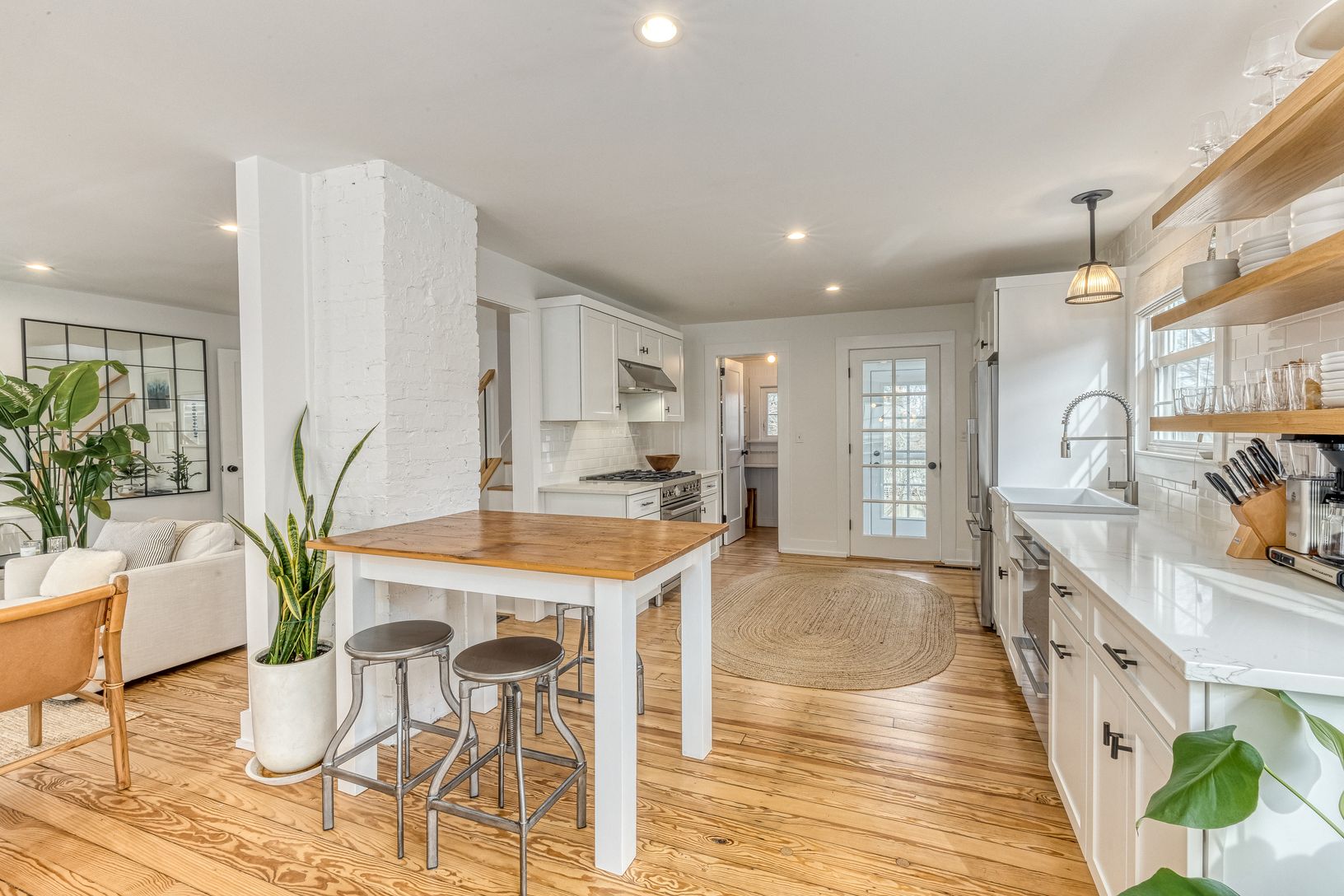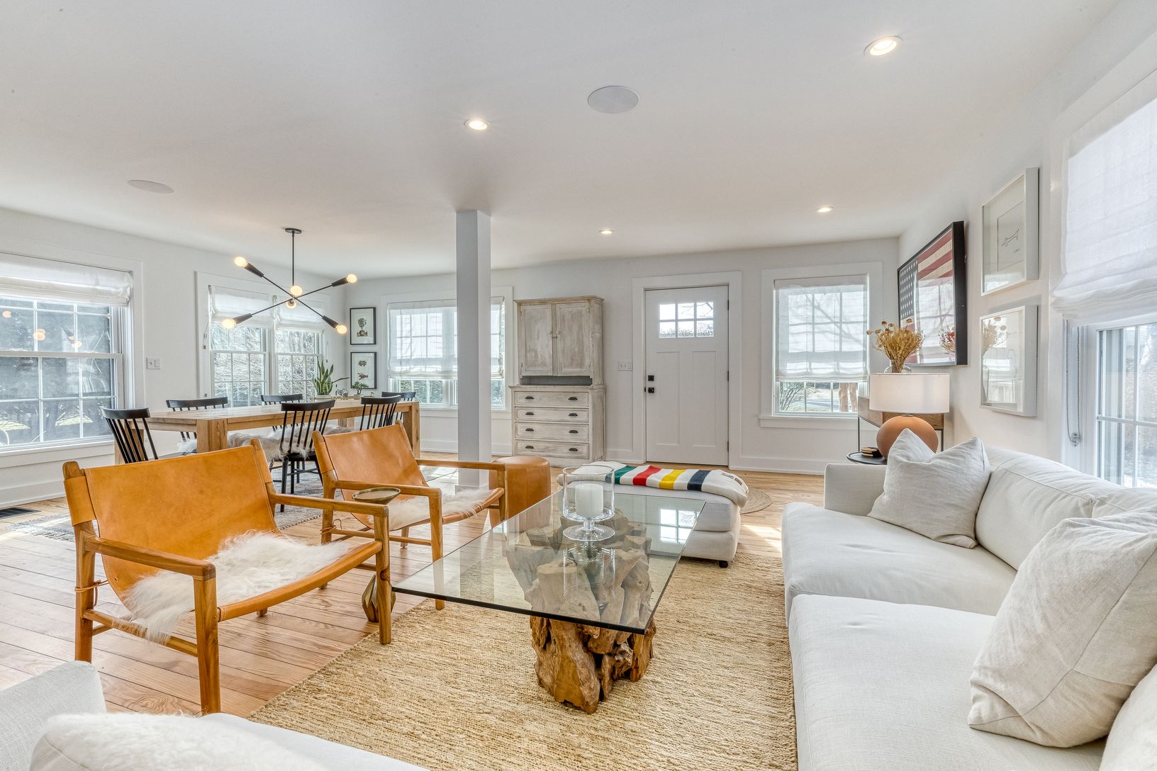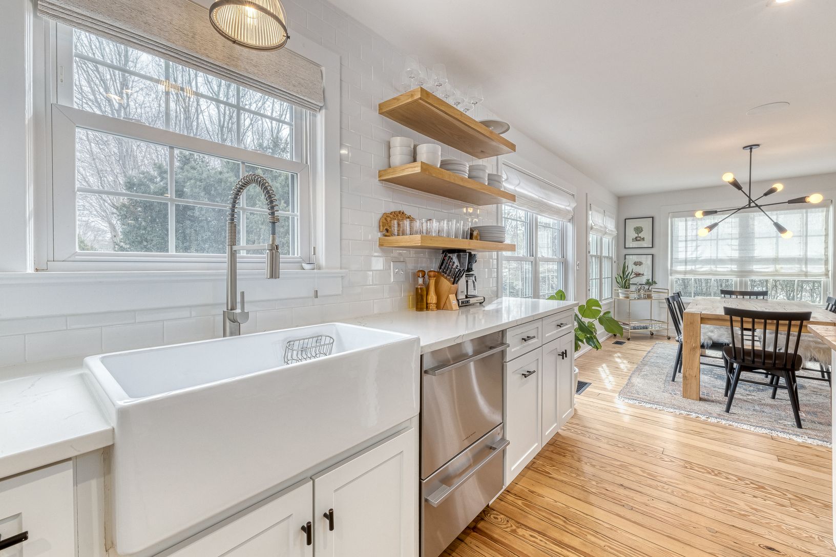 Fleets Neck Area, Cutchogue North Fork - meticulously renovated 3-bedroom 1930's Cape by the beach at 1305 Pequash Avenue, Cutchogue. Immaculate and fun. Chic designer touches throughout this move-in ready home featuring expressive wood flooring throughout. The designer kitchen features an impressive Bertozoni gas range, Fisher-Pykel Refrigerator/Freezer, and a dual dishwasher. Comfortable spaces await you and your guests to North Fork Wine Co