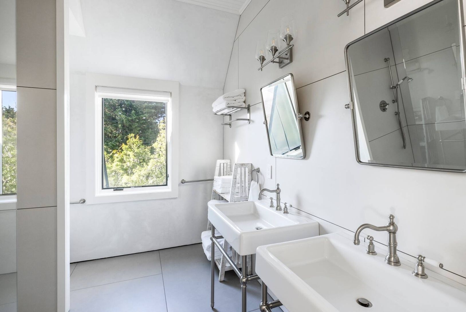 Located moments to Montauk Village and ocean beaches, enjoy expansive western facing water views across Fort Pond from this incredible waterfront compound. Featuring two adjacent and contiguous properties spanning a total of .96 acres with a newly constructed modern barn style home with infinity edge pool, a light filled traditional with two legal guest apartments, and a spacious two car garage. A private dock allows easy access to fort pond t