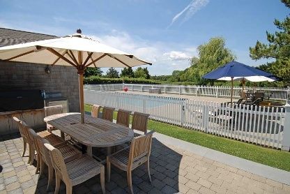 Secluded in the heart of the village you will find this immaculate shingled traditional offering 5 ensuite bedrooms with baths, service bedroom with bath, state of the art eat in kitchen opening to a large den with French doors to terrace and pool area. Plus living room with fireplace, den with fireplace and staff quarters. The property is hedged and gated for privacy and includes a boat dock on Heady Creek which opens to Shinnecock Bay. A rec