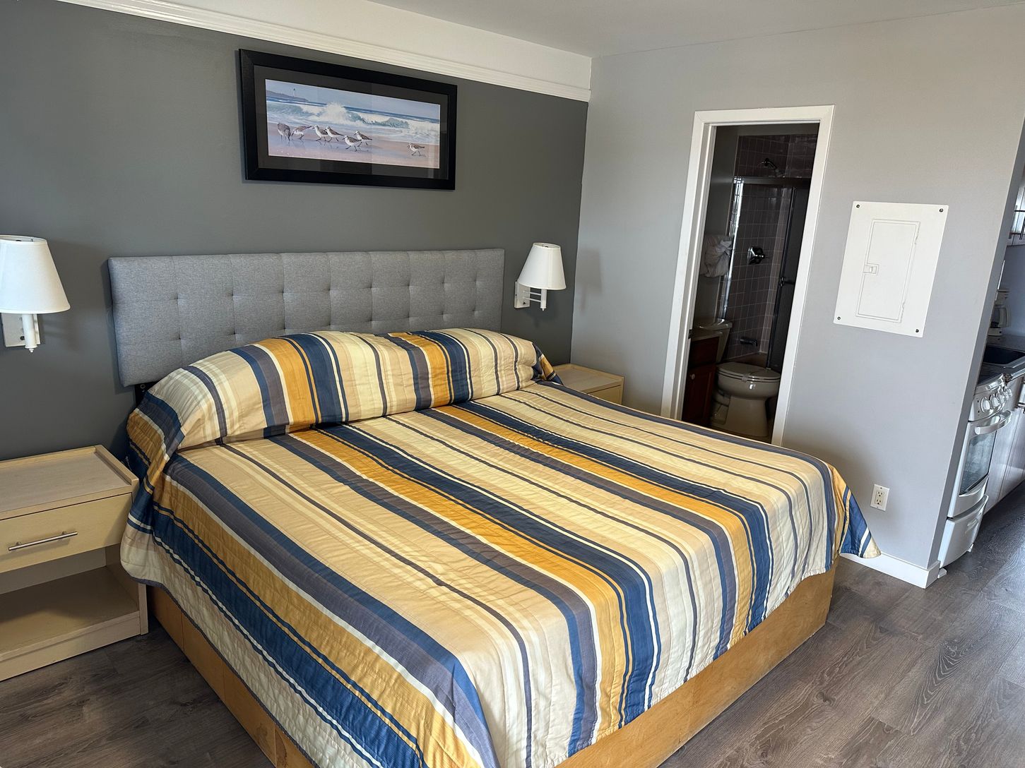 Located south of the highway, and across from the ocean, is this hidden gem located upstairs in the north building. This unit consists of a bedroom with a king size bed with built ins, an updated galley kitchen, and a living/dining area with pull-out couch. There is a swimming pool for the building but you can enjoy any of the complexes amenities. Unpack and enjoy all this complex has to offer