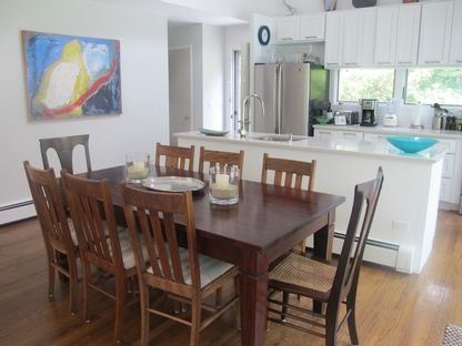Rental Registration #: 18-430 This two story contemporary Saltbox is a very special house in a serene and beautiful setting surrounded by towering pines and beautiful trees. There are four bright bedrooms, front and back decks, an open sun-filled living room, dining room, renovated contemporary kitchen, two bathrooms, full basement and AC units in each room. Heated pool measure 20' x 40'. House is five minutes from EH town and beaches..