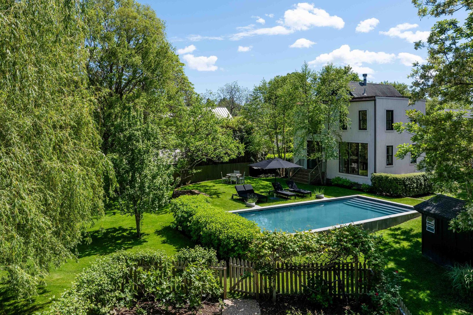 Abutting a pristine 9 acre+/- reserve and positioned along one of Sag Harbor’s most coveted streets, 132 Glover Street is a beautifully renovated traditional residence offering 2,500 SF+/- of thoughtfully designed interiors, including 3 bedrooms and 2 full and 1 half bathrooms. The home features a 15’ x 32’ heated gunite pool, a charming studio with 1 full bathroom, and meticulously landscaped grounds set on 0.67 acres+/-. With timeless finish