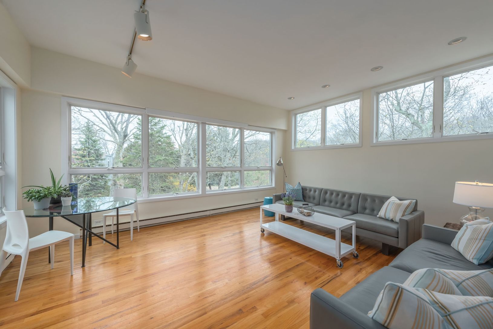 Located in the much sought after Lion Head Beach Community, this spacious and light three bedroom, two and one-half bath home, with wood floors throughout, is right around the corner from a private bay beach and marina, offering some of the best sunsets that the Hamptons has to offer. The master en-suite bedroom is located on the first floor as are the other two bedrooms and the second full bath. The second floor features open plan living area