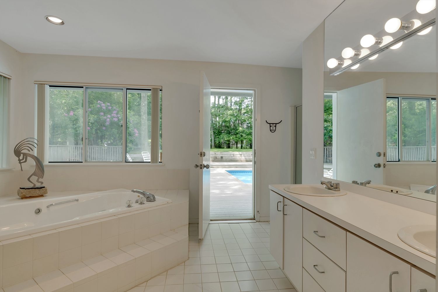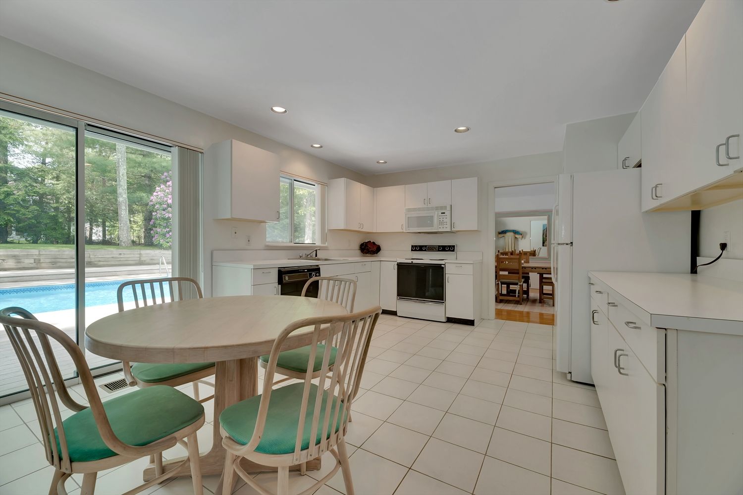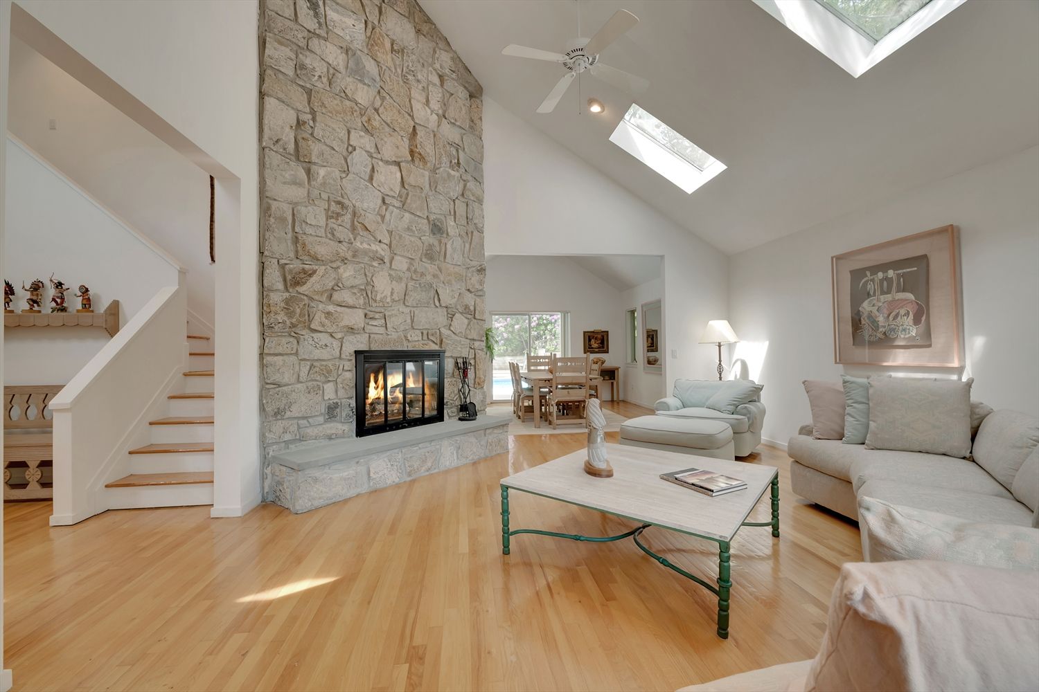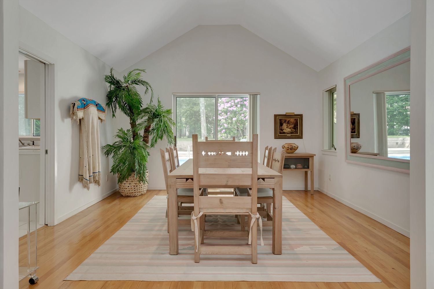 Nestled in Bridgehampton farm country, 132 Sea Farm Lane offers peace, sanctuary and great value with close proximity to town and world-class beaches. At the very end of a quiet cul-de-sac, upon entry, the gracious foyer welcomes you to the easy, carefree open floor plan. Tons of light stream inside through the living room skylights and sliders to the pool deck. Wonderful vaulted ceilings create an incredible sense of space together with the