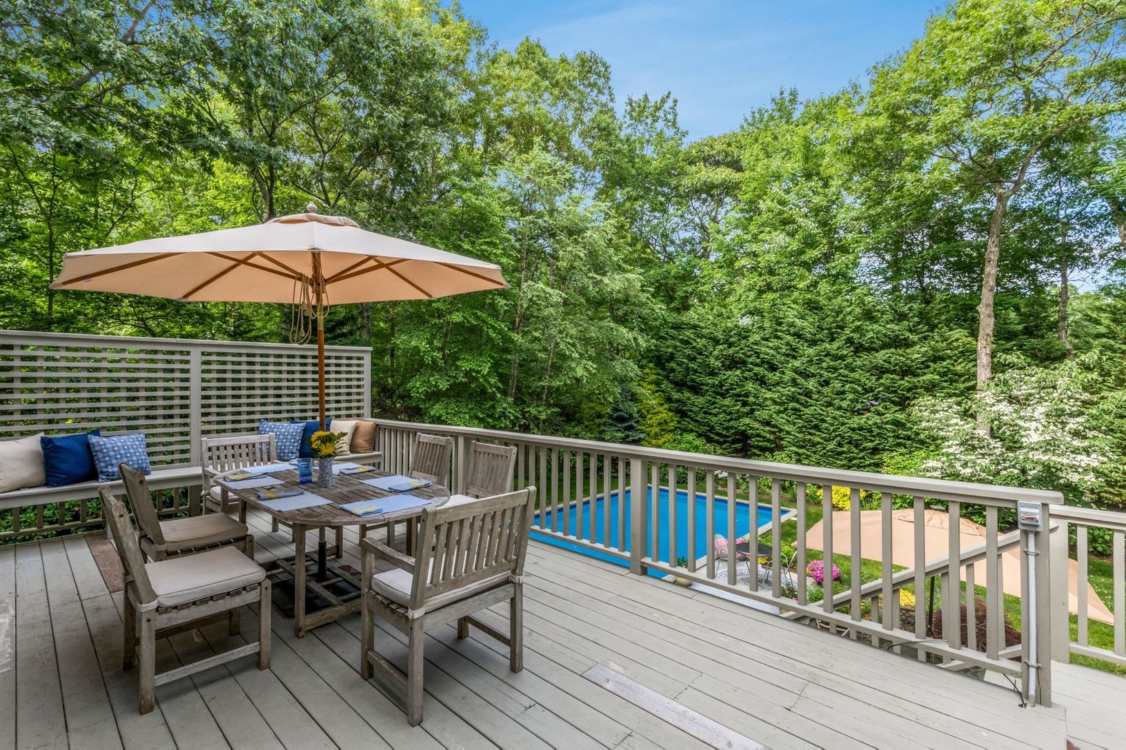 Lovely, three-bedroom home on quiet cul-de-sac with pool and expansive deck in Sag Harbor School district. New bathrooms, movie room, outdoor grill, expansive deck, lovely landscaping. Apple trees in the front! Separate office.