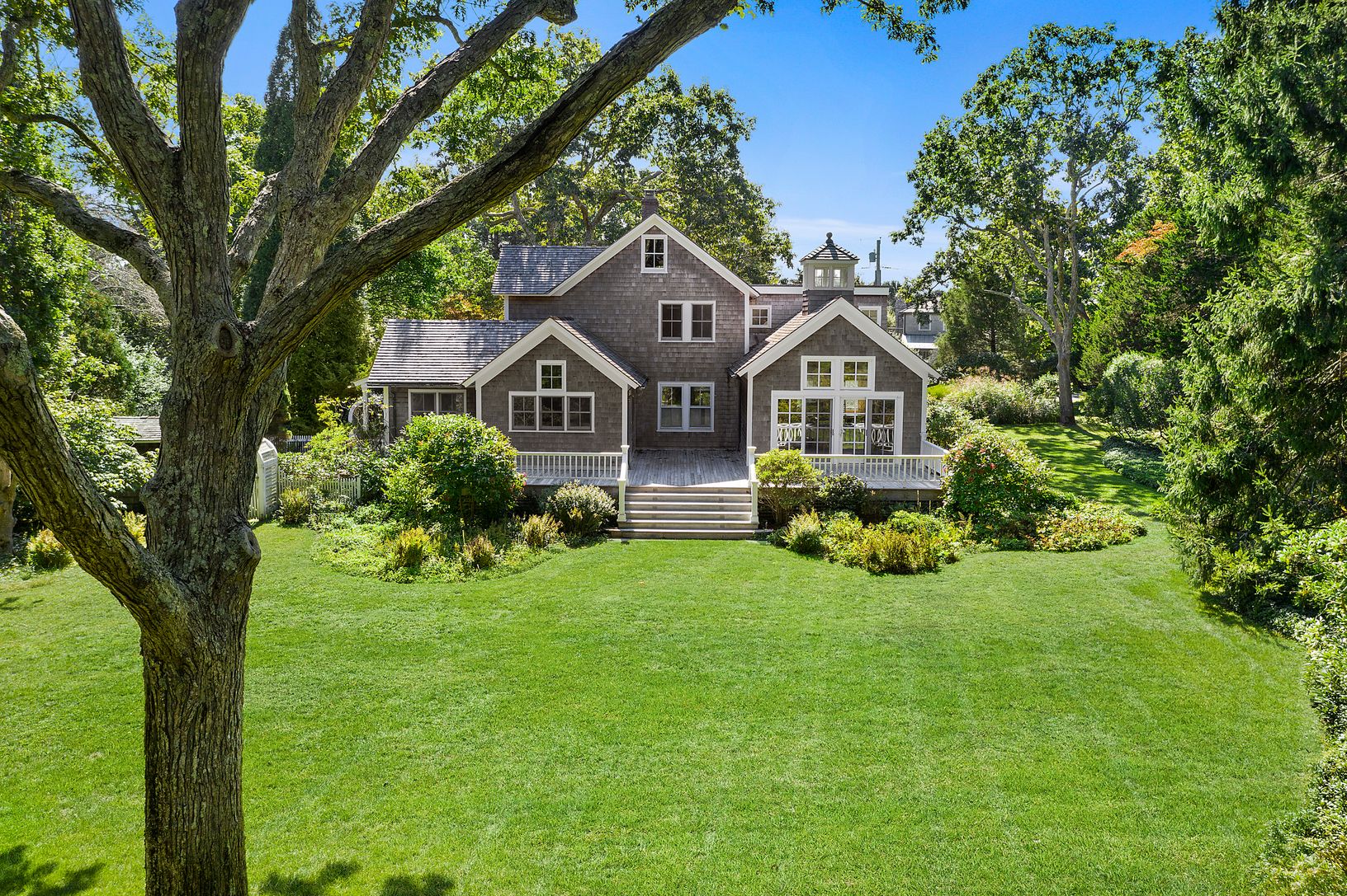 As the founder of the Central Park Conservancy, Elizabeth Barlow Rogers spearheaded the efforts that made Central Park the marvel it is today. She was inspired by Central Park, which is why her landscaping emulates a smaller scale in Wainscott. Her property entails mature landscaping , hand-crafted gates, winding rock paths and hand-crafted overpasses and hand crafted benches, all of which lead to a scenic man-made pond and waterfall.