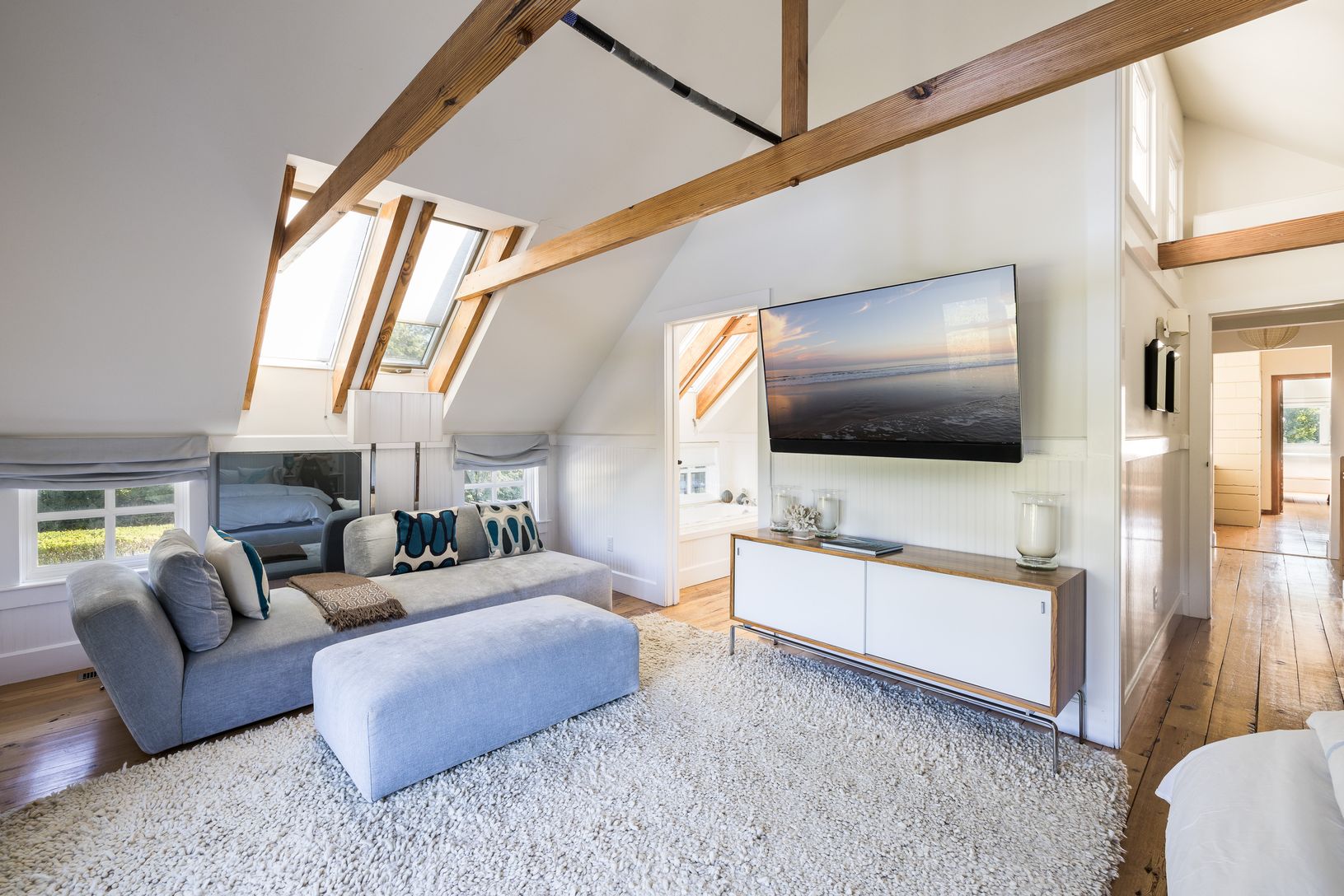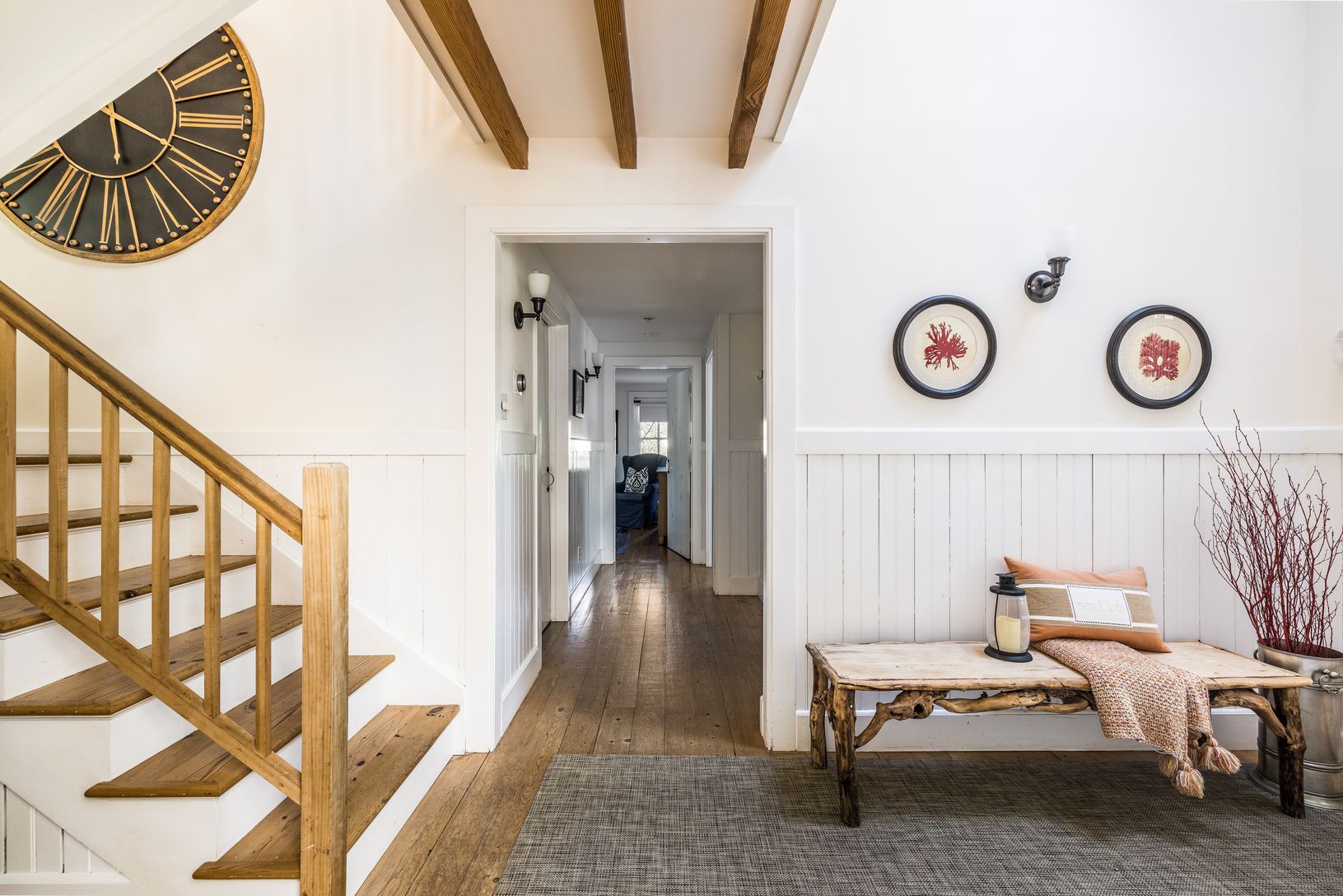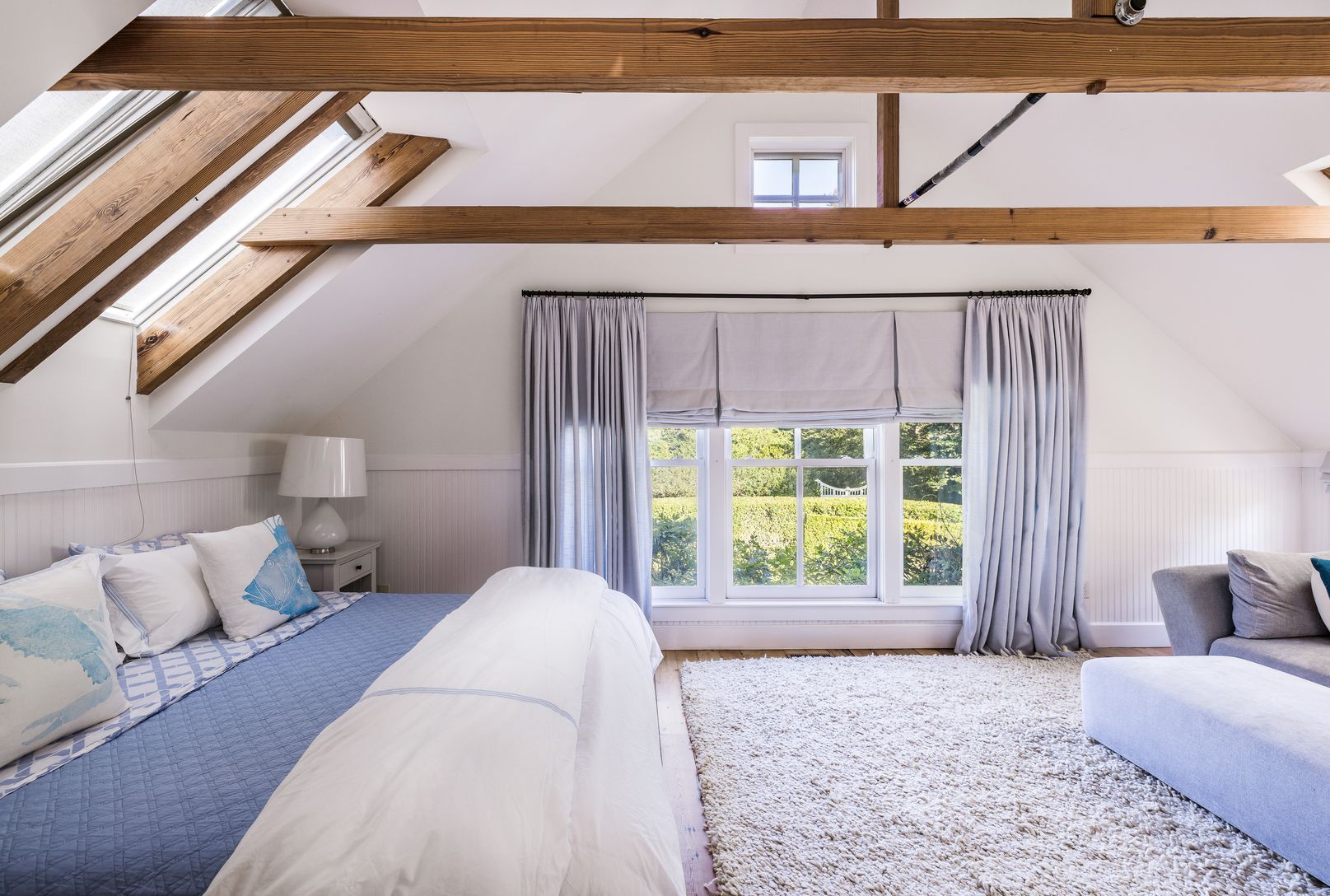 Located on one of the most picturesque lanes in East Hampton, this private 4 bedroom, 3 bath shingled traditional home is available for rent. It is within seconds to ocean beaches, Maidstone Club, and East Hampton Village, making it a convenient location for your next vacation. The classic comfort of the house is complemented by a light and airy ambiance, with hardwood flooring and a vaulted ceiling featuring exquisitely exposed wood beams. Th