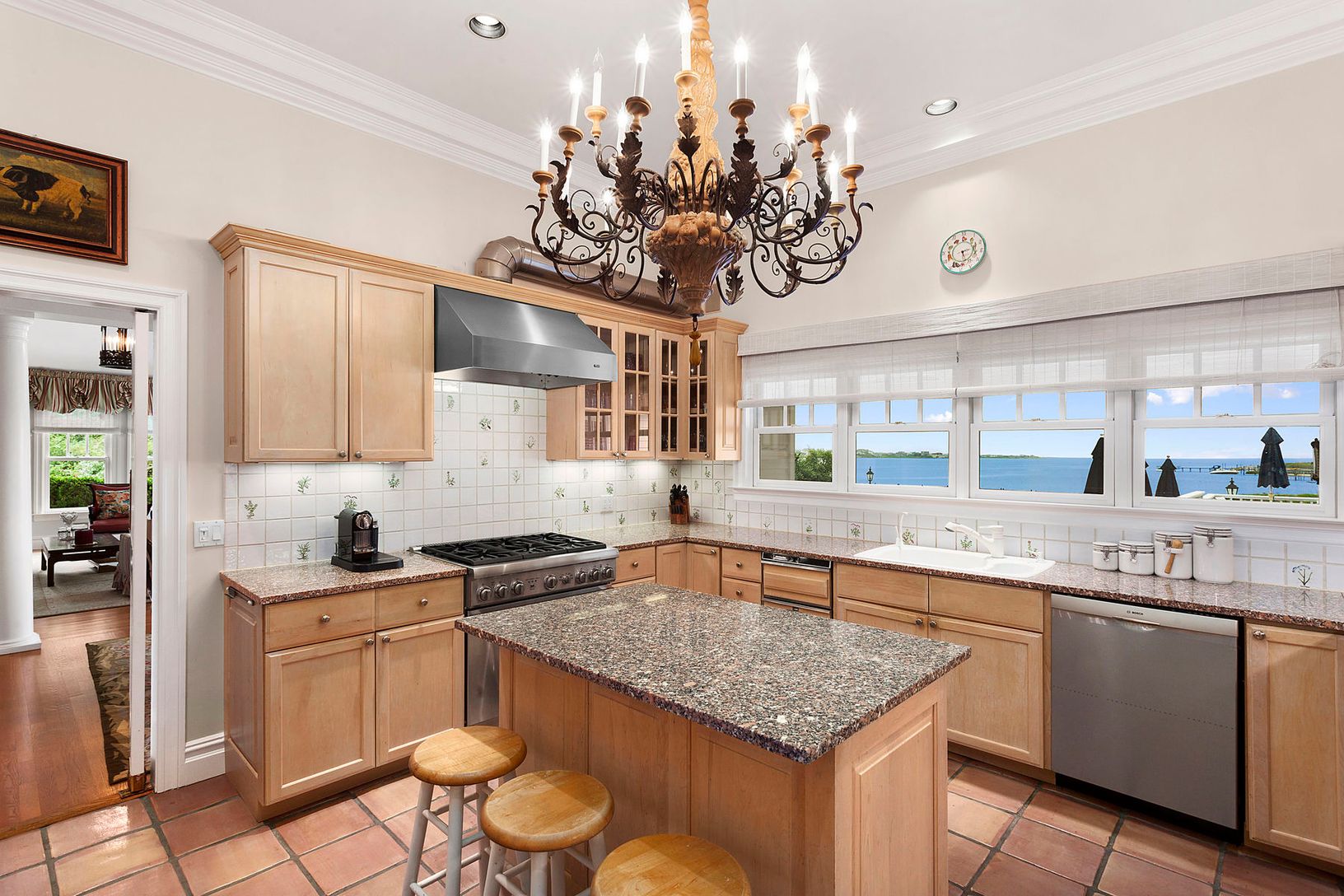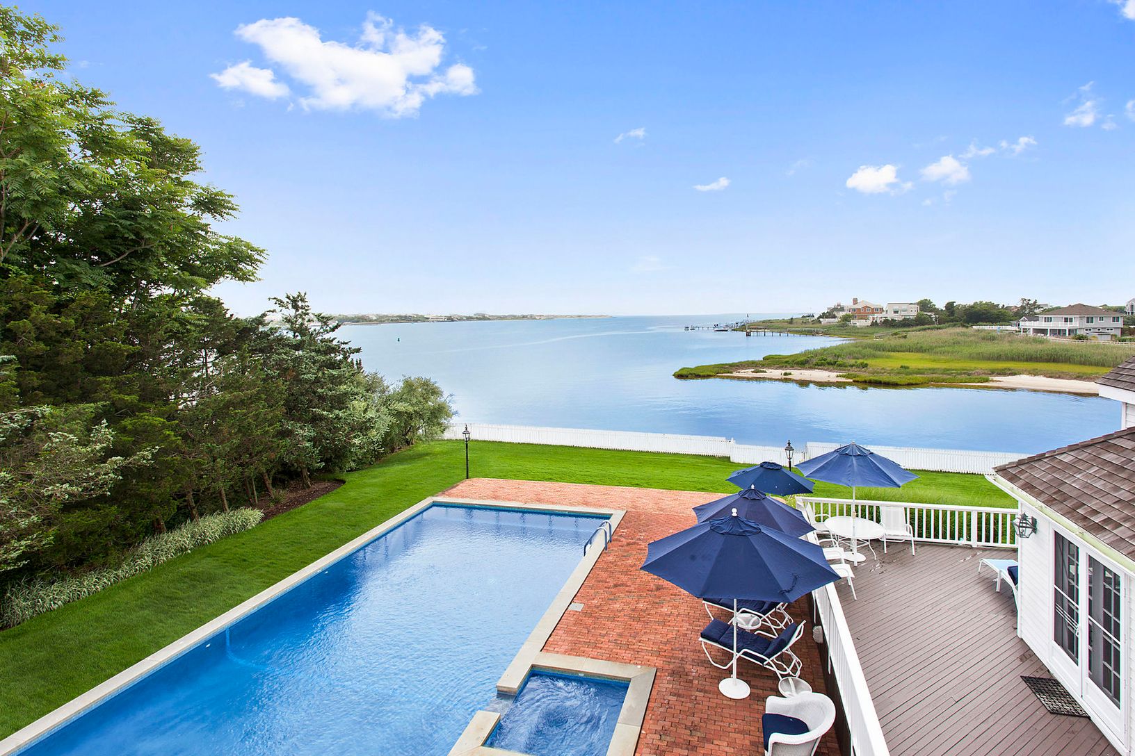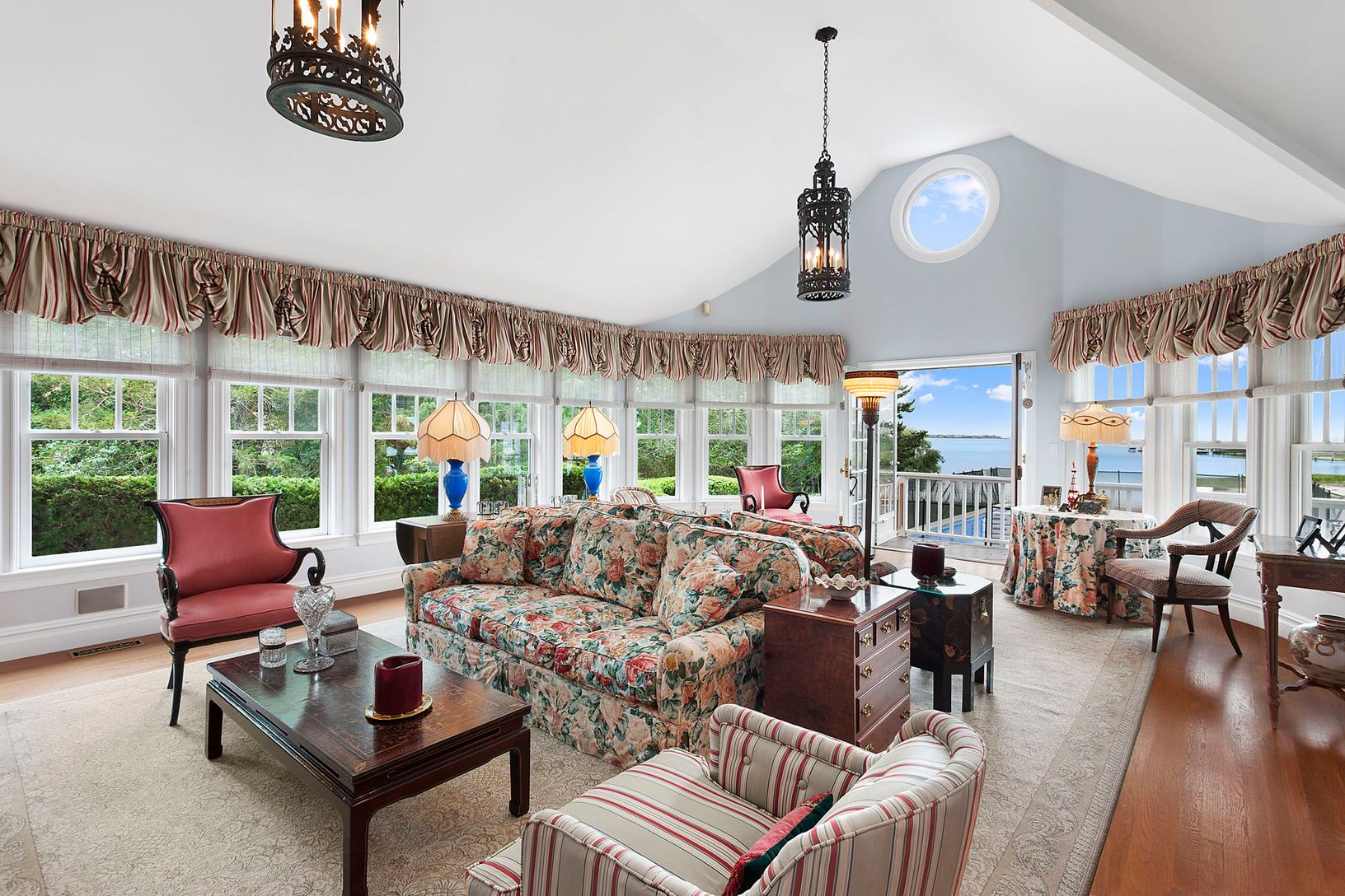 Traditional custom built 6900 square foot bay front estate designed by well known architect, Nick Vero. This Bayfront estate set on 1.2 acres with all the amenities for summer living including mature landscaping,150 feet of deep water bulk heading, multi level decking, waterfront heated gunite pool with built in Jacuzzi and tennis court. Enter into the dramatic foyer with grand staircase, waterside formal dining room, cathedral ceiling livin