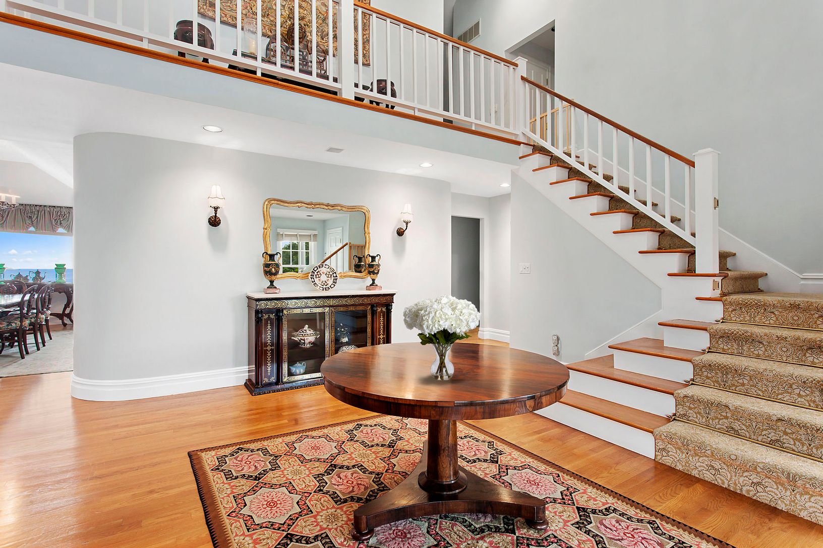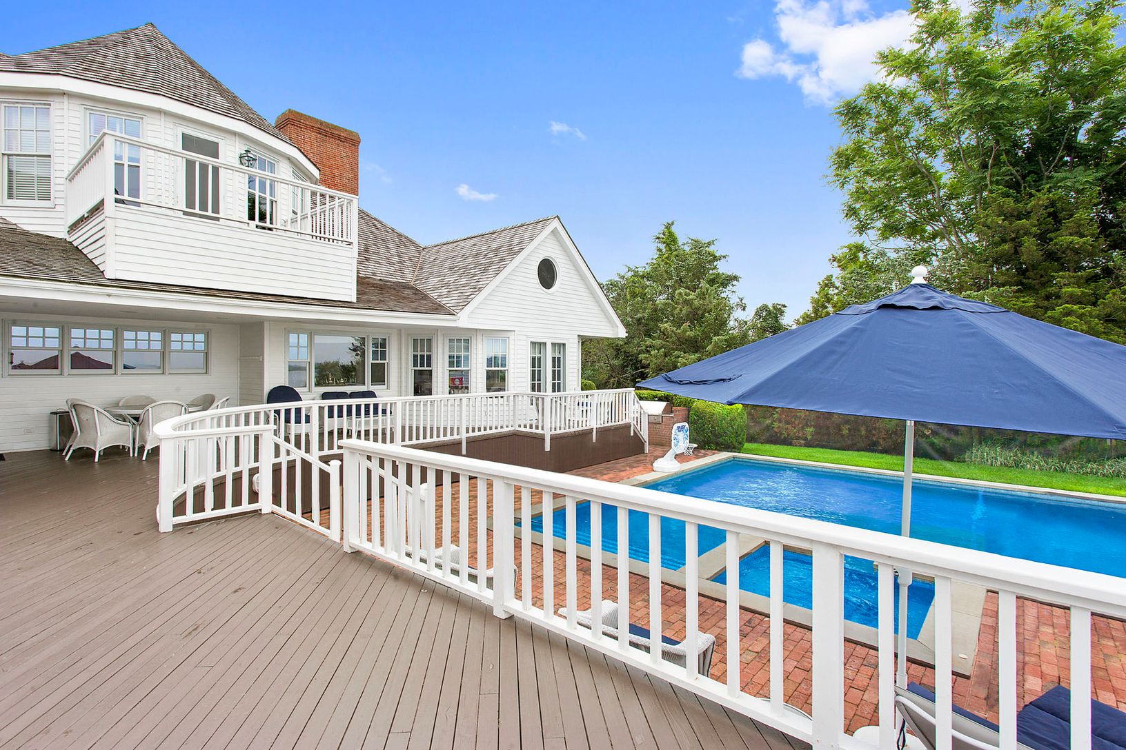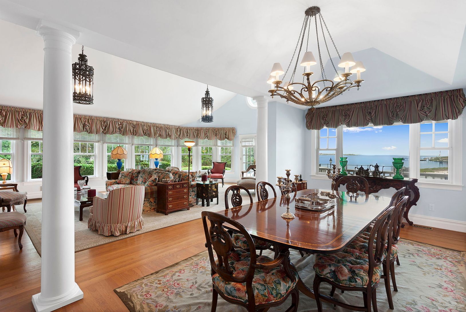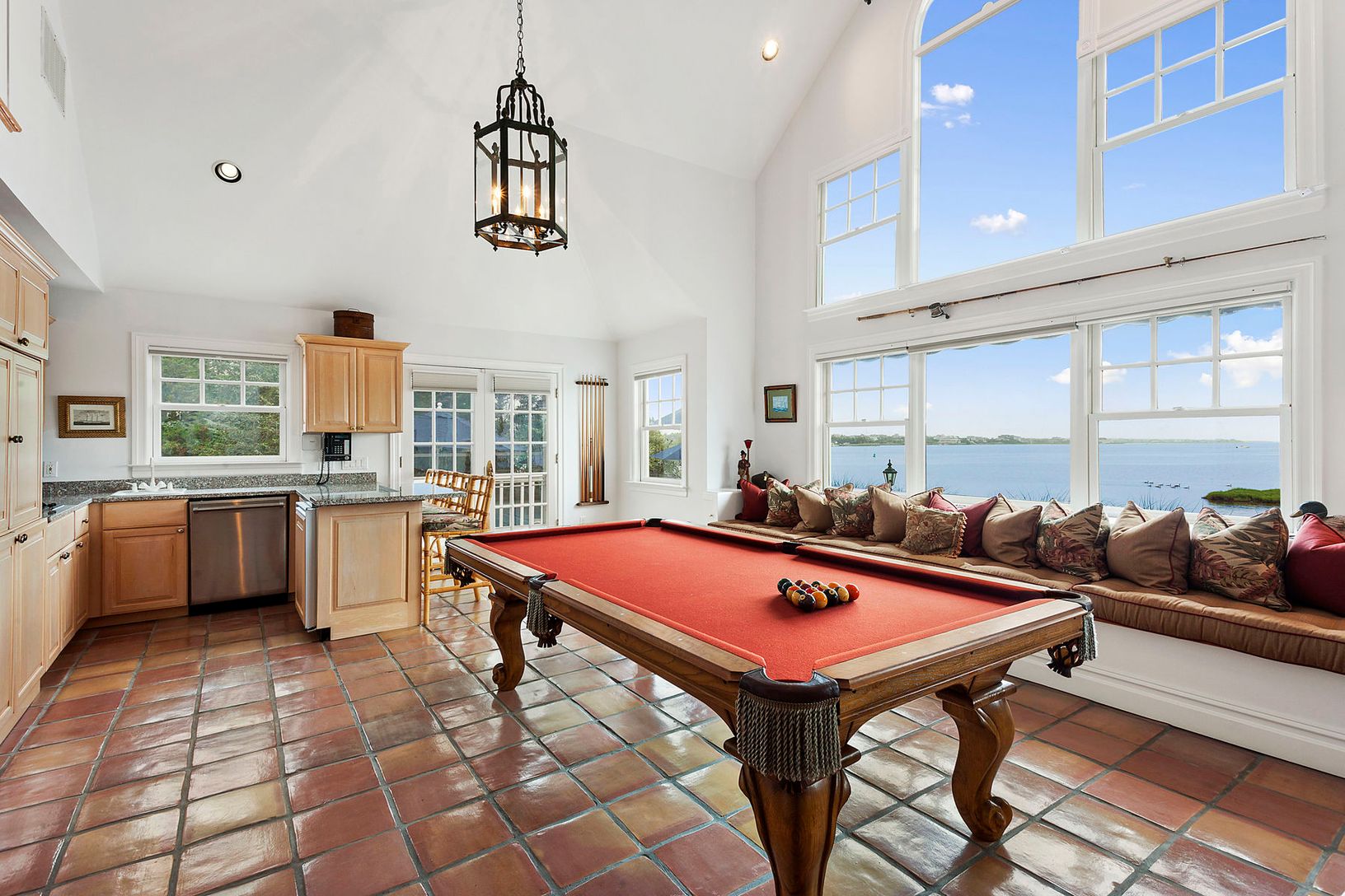 Traditional custom built 6900 square foot bay front estate designed by well known architect, Nick Vero. This Bayfront estate set on 1.2 acres with all the amenities for summer living including mature landscaping,150 feet of deep water bulk heading, multi level decking, waterfront heated gunite pool with built in Jacuzzi and tennis court. Enter into the dramatic foyer with grand staircase, waterside formal dining room, cathedral ceiling livin