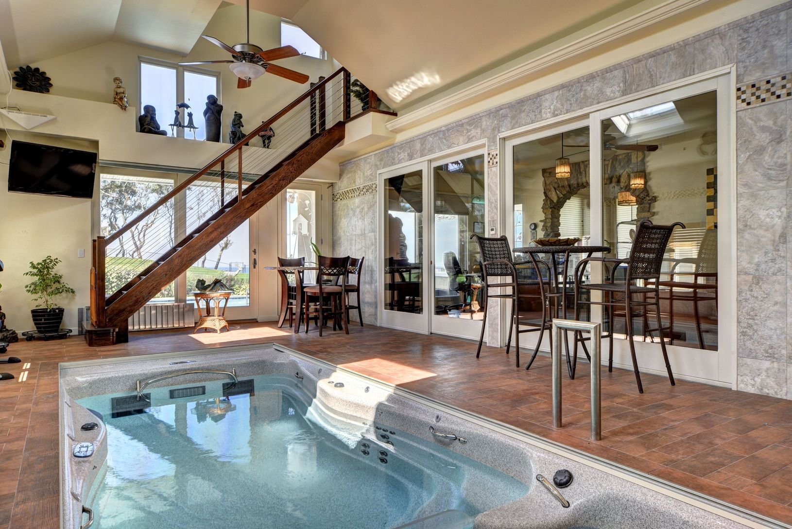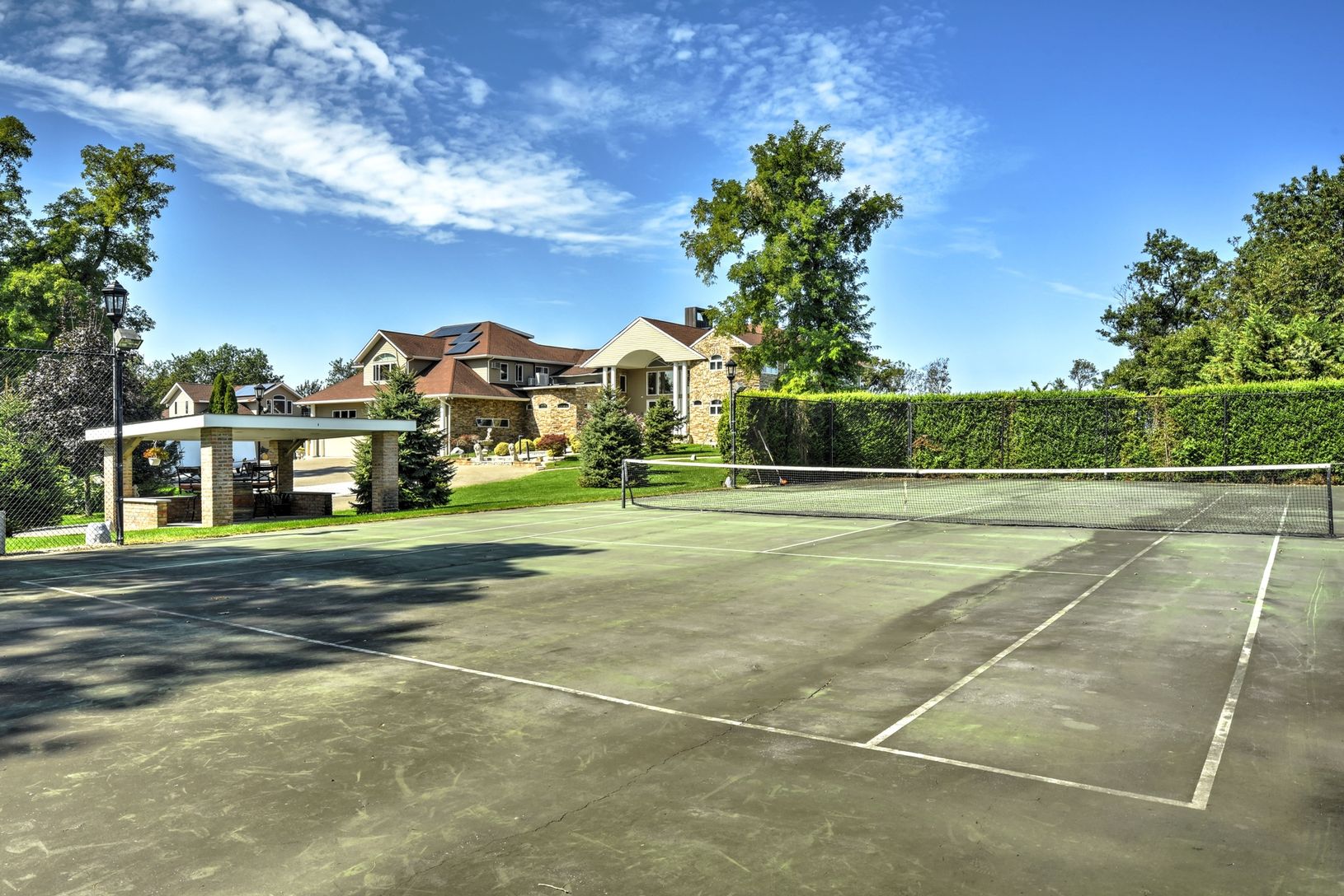 Built for entertaining. Set on over 6 acres, with 490' of waterfront. Inside, you have a pool, 6+ BRs, 8+ BAs, a commercial kitchen, 2 wine cellars and an elevator. Outside you have an IG pool, 7 BAs, commercial kitchen, a har-tru tennis court and stairs to your beach. Please inquire for additional details!