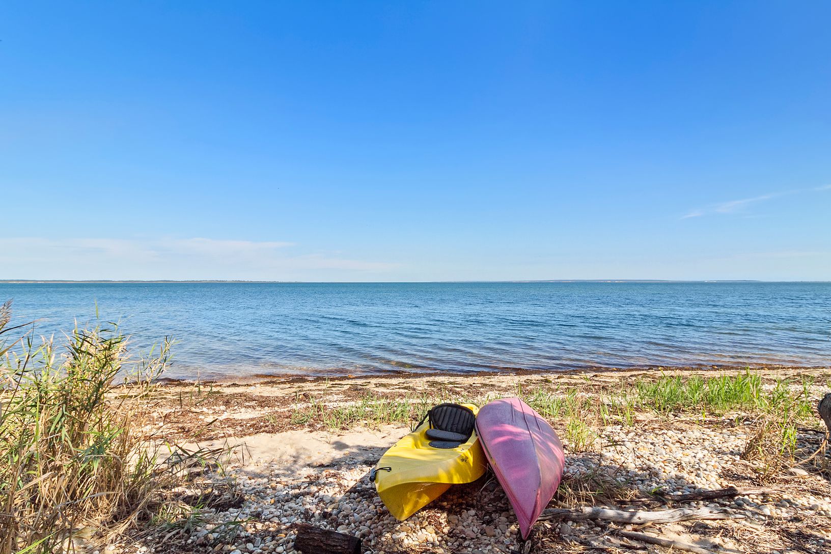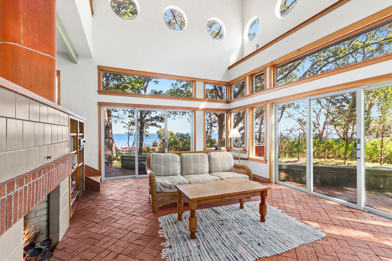 This unique street in Springs of East Hampton offers unobstructive water views of both Accabonac Harbor and Gardiner’s Bay that can be enjoyed year-round. The abundance of light and nature surrounding you will feel like your own private sanctuary. The home was renovated in 1999 by reknown architect Bill Chaleff, with the vision of a boat ono the water which is portrayed throughout the house with vaulted ceilings and views of the water from all