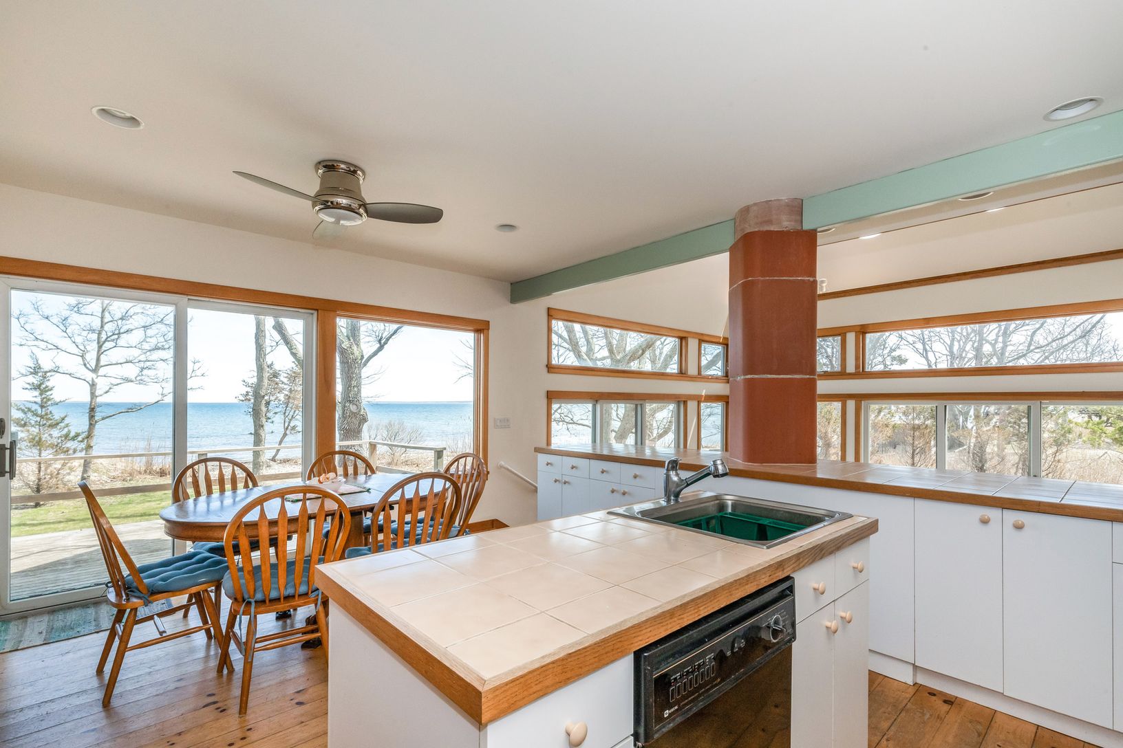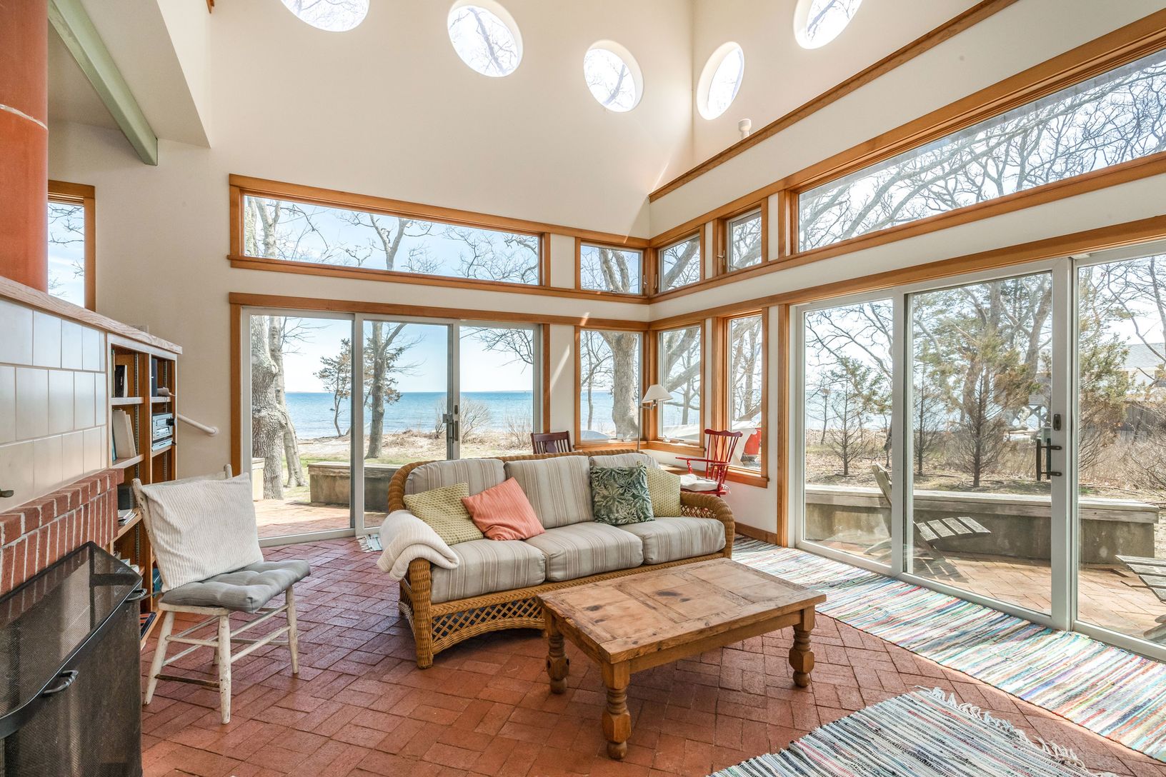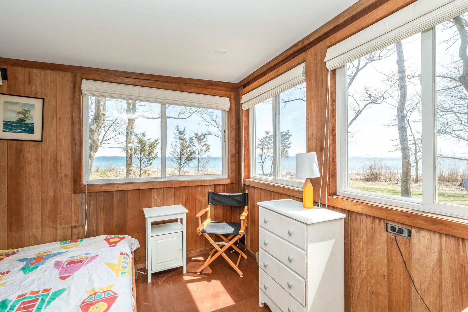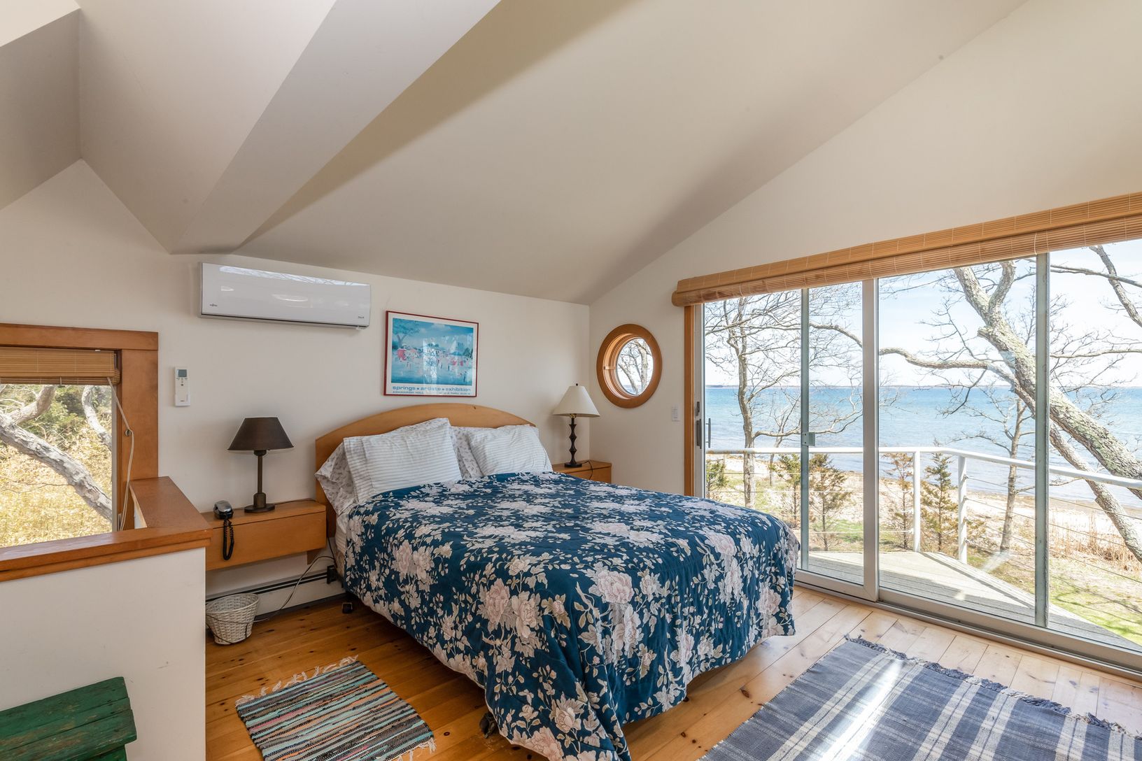 Rental Registration #: 18-810 Spectacular views of Gardiner's Bay and direct beachfront access on one of the most private and secluded areas of East Hampton. Upstairs master bedroom with water views and an open floorplan dining room, kitchen and living room. Newly renovated cottage is a separate third bedroom with half bath..