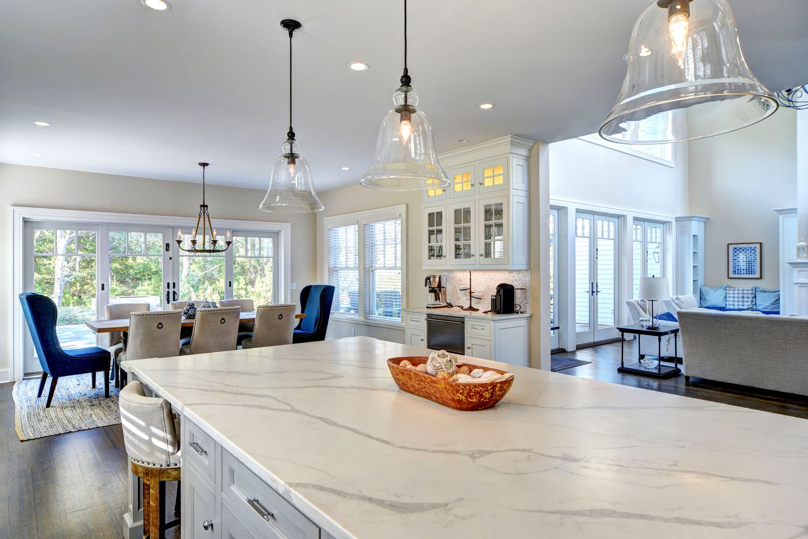 Stunning builders own Hither Hills Traditional home situated on 1.4 acres with deeded ocean beach rights. This designer home has it all with expansive open living areas with 24' ceilings and fireplace all leading out to the expansive decks and the tranquil pool area. The large gourmet kitchen with European quartz counters, stainless steel Monogram appliances and custom cabinetry with a large central island and spacious dining area, all flooded
