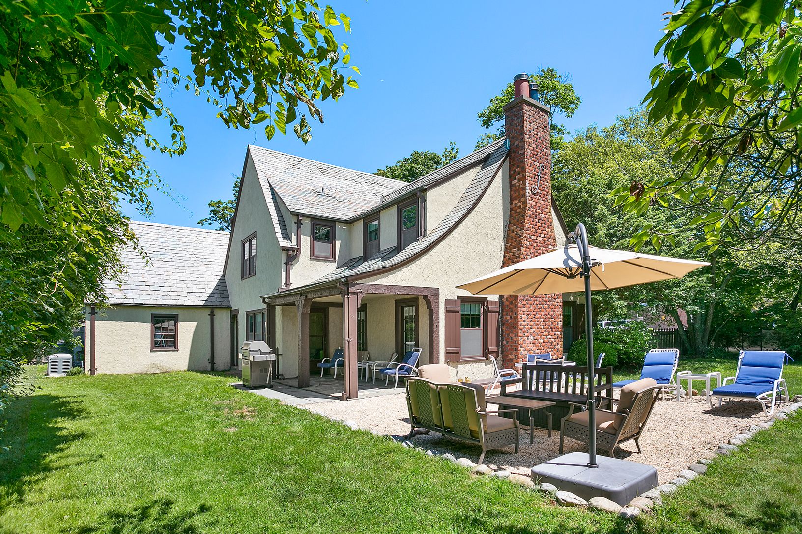 This Stately Southampton Tudor home on .37 acres in the heart of the village within seconds to Ocean beaches and town has lots of natural light this four bedroom home has two and a half baths, dining room, den, living room with fireplace and eat-in kitchen , pantry and two-car garage . First floor has grand entry foyer with winding staircase to the right is the living room with fireplace with plenty of windows overlooking the private garden an