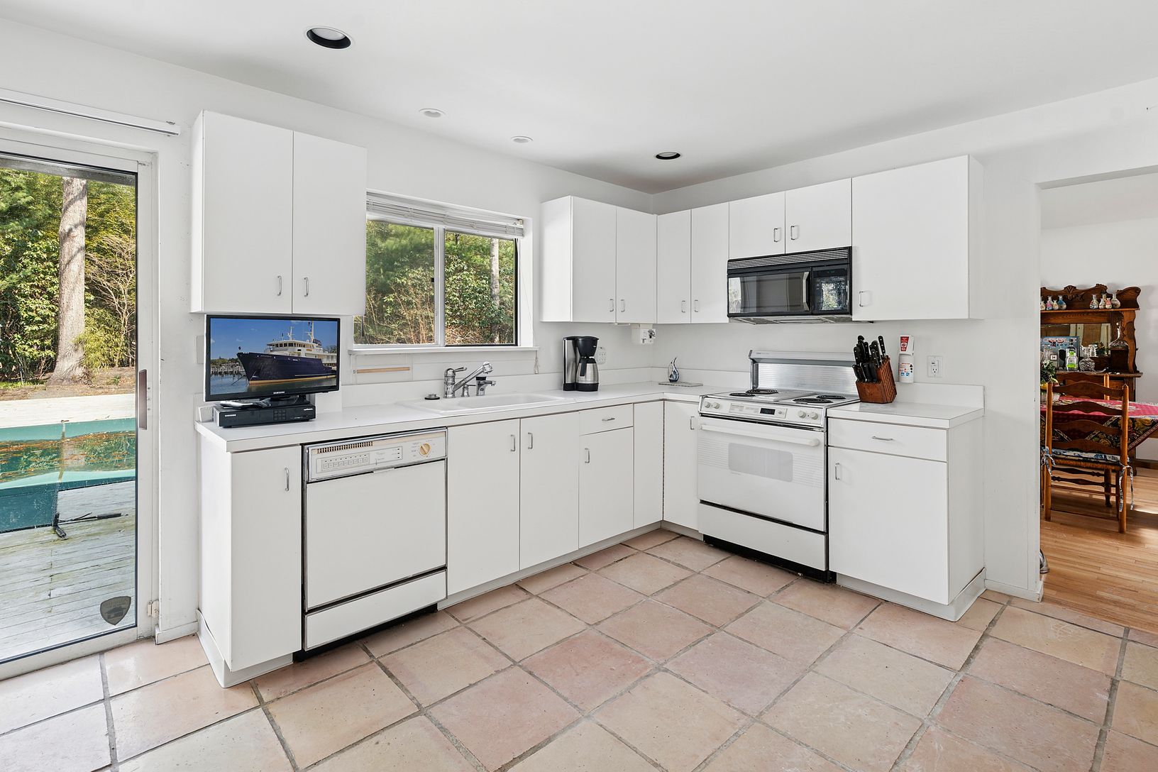 Tucked away at the end of a peaceful cul-de-sac, this charming 4-bedroom, 3-bathroom home presents a rare chance to own a Hamptons retreat brimming with potential. Offering 2,300 +/- square feet of living space, set on a generous half-acre lot, it's just 1.4 miles from the heart of Bridgehampton. Upon entering, you'll be welcomed by an inviting floor plan perfect for everyday living. The vaulted living room, complete with a cozy fireplace, set
