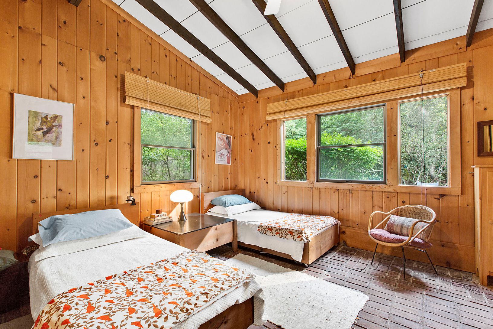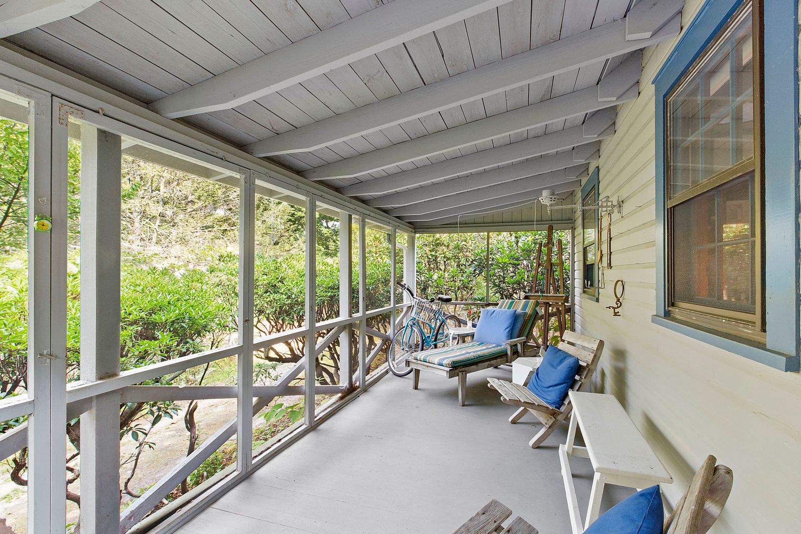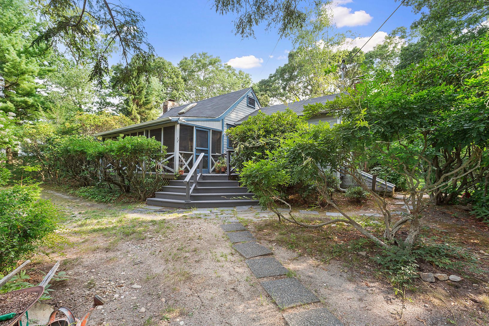 Close to the historic hub of the Springs, less than half a mile to the world-famous Jackson Pollock-Lee Krasner home and studio, is nestled on a private half acre, this quintessential, solidly built storybook-like cottage with a lovely screened in front porch, two bedrooms, and one bath. The pitched ceilings offer a sense of spaciousness within the cozy setting of hardwood floors, stone fireplace and built in cabinetry that opens to a beautifu