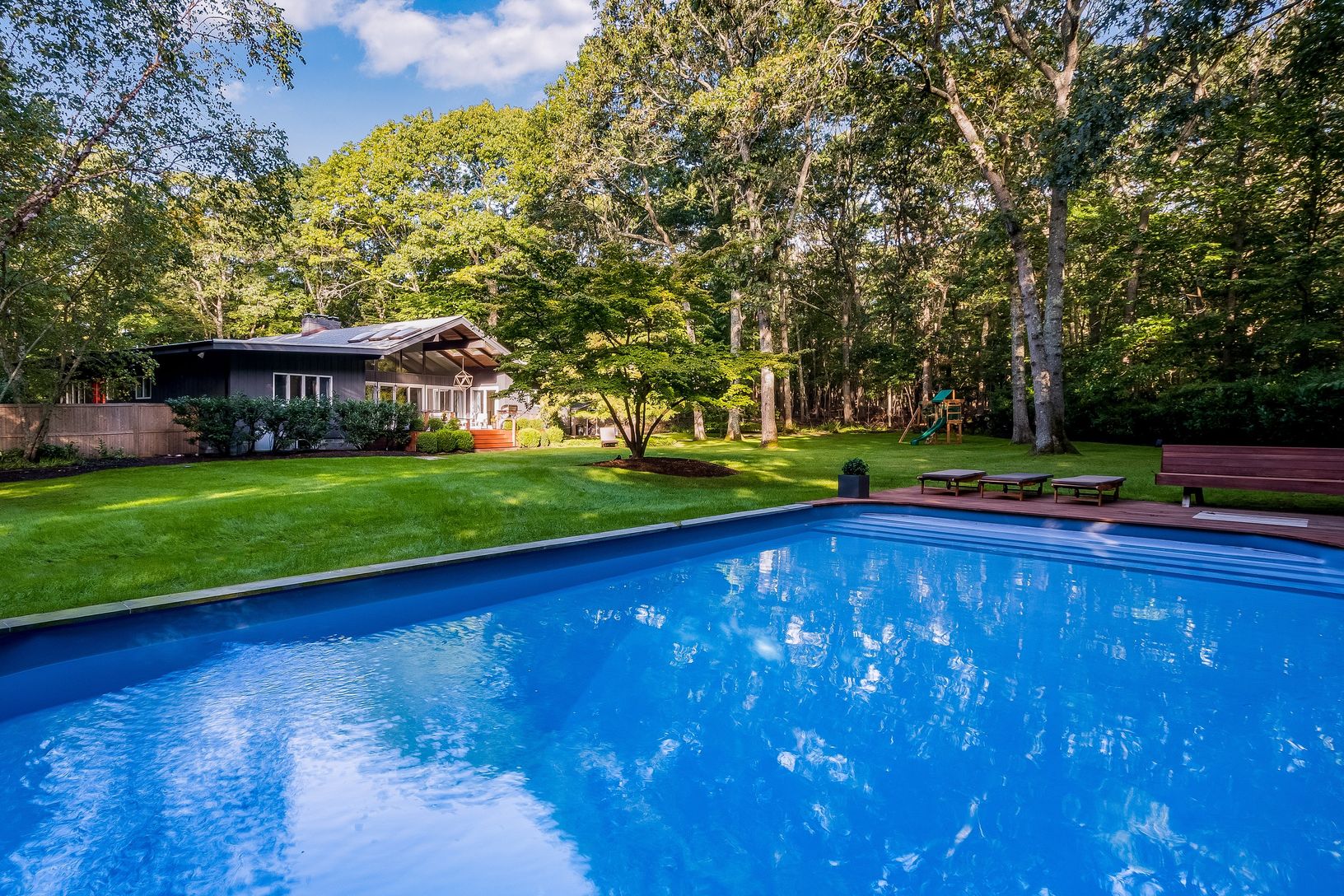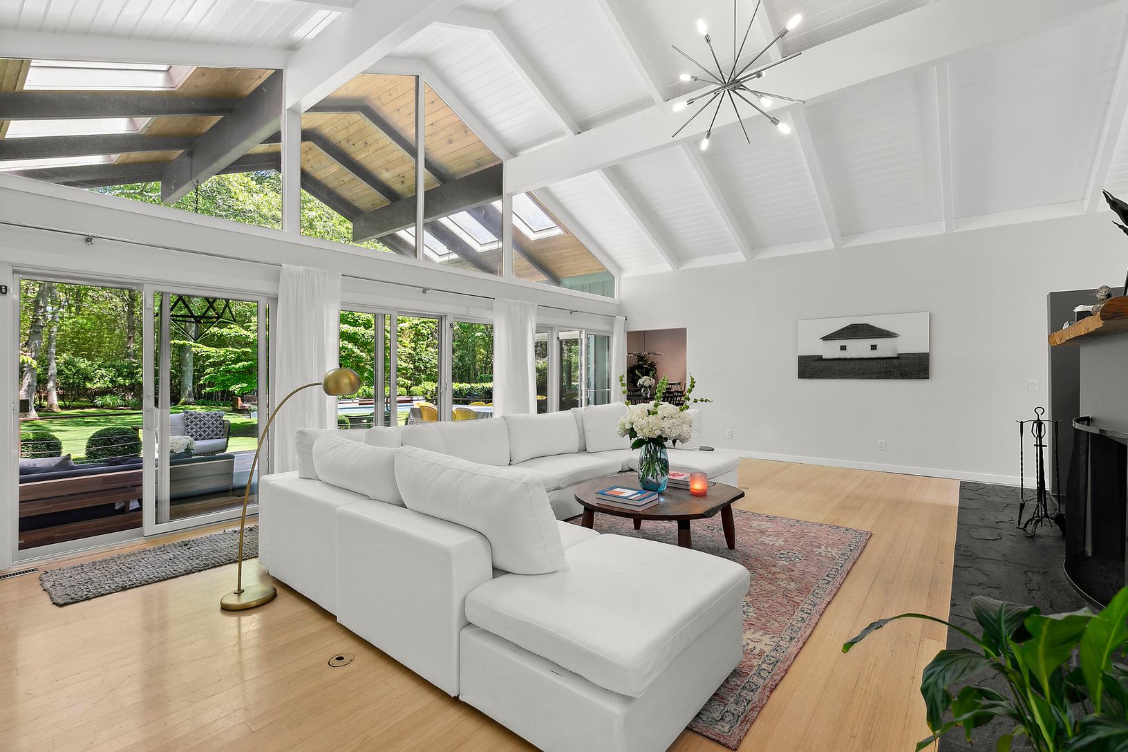 Welcome to a private, design-forward retreat on the fringe of East Hampton Village, where mid-century modern architecture meets effortless Hamptons living. Set on two lush acres, this serene estate offers space, privacy, and thoughtful amenities ideal for families, wellness-focused guests, and relaxed entertaining.
