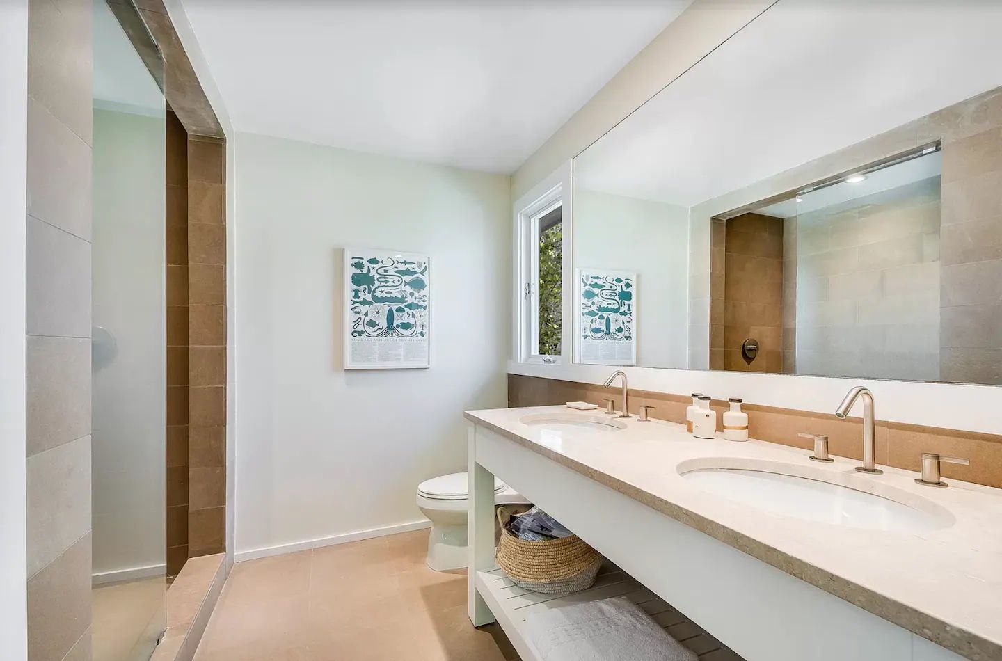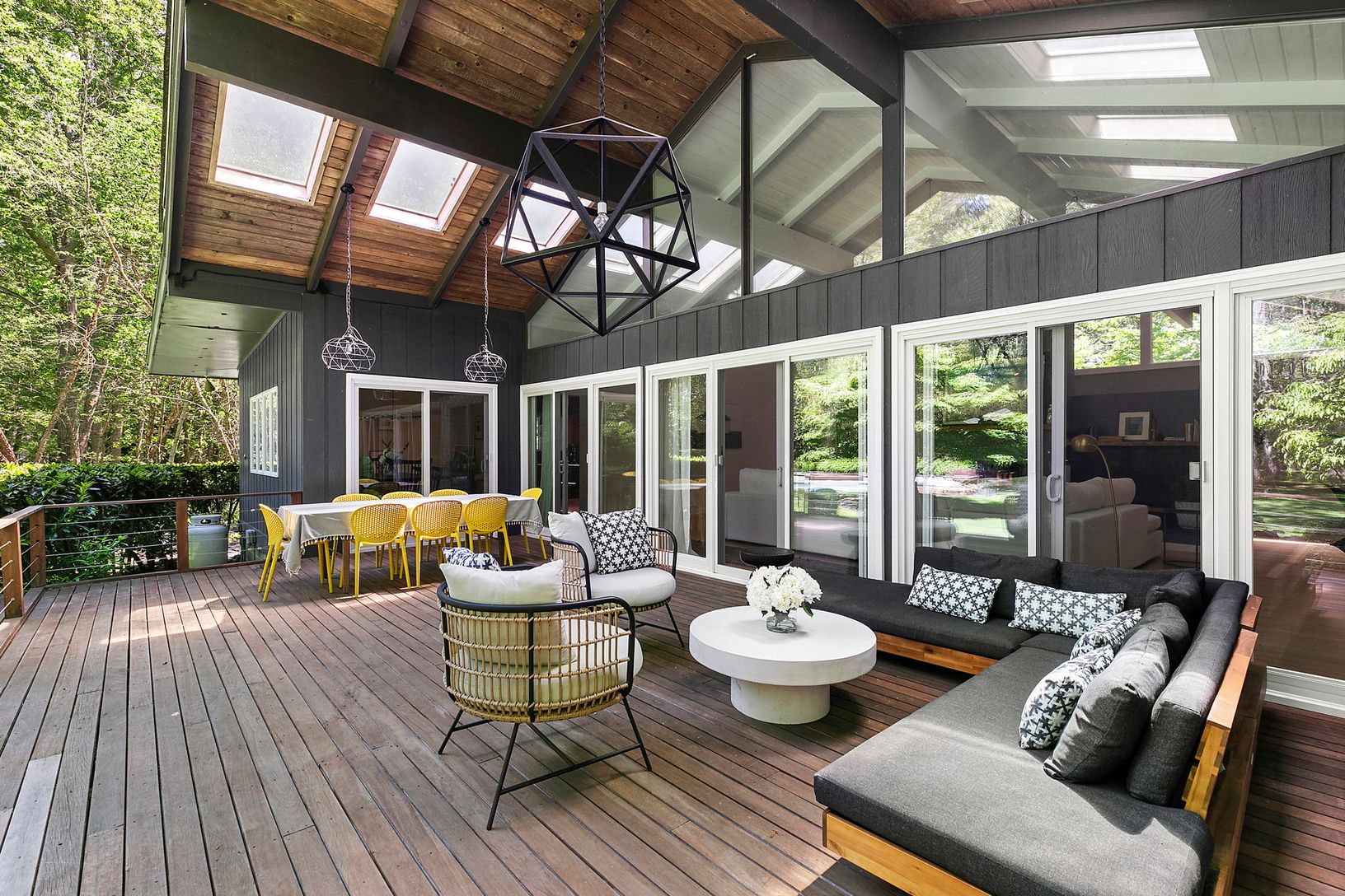 The home features 5 bedrooms and 4 full bathrooms across two levels, with an open, airy floor plan, clean architectural li