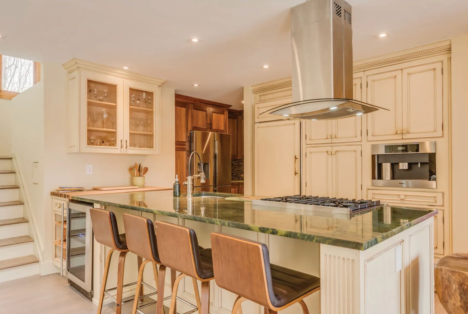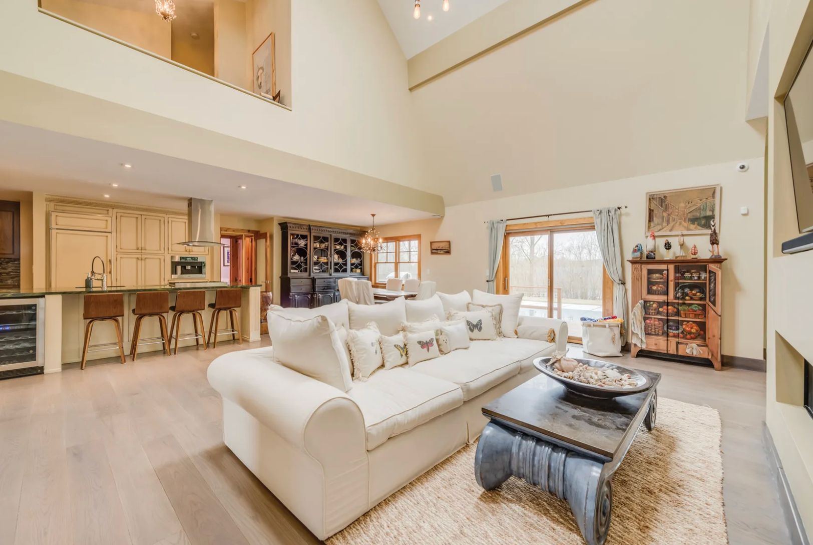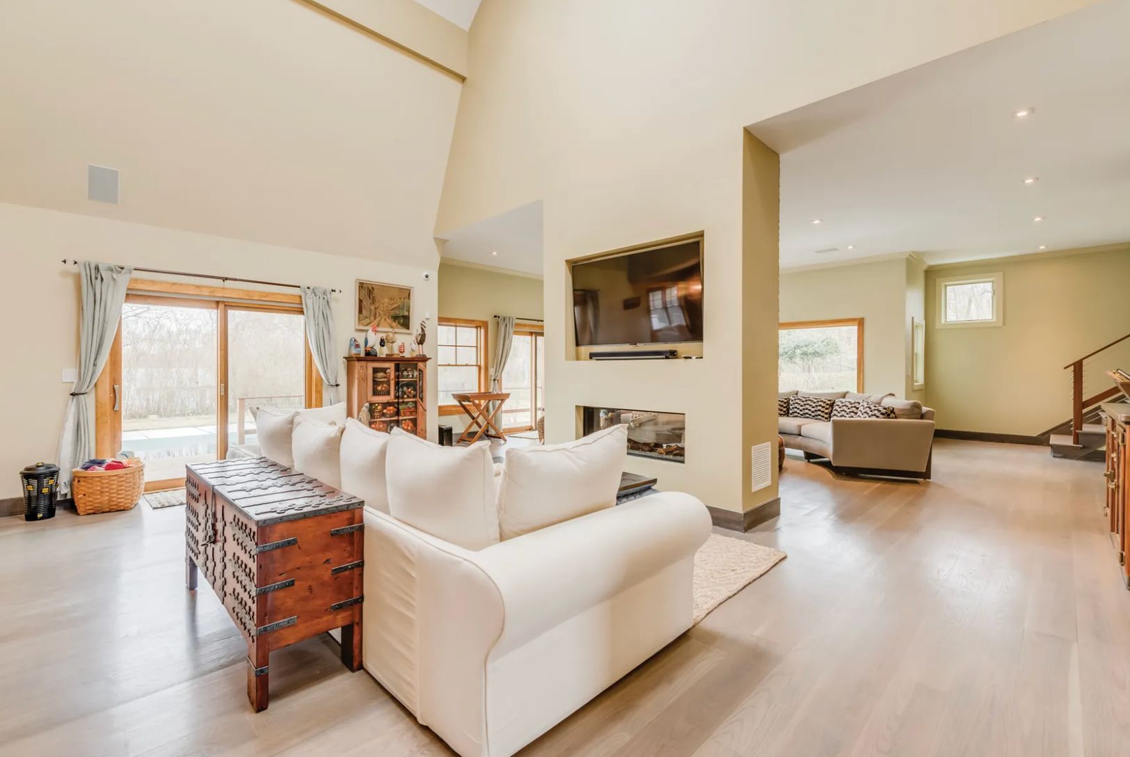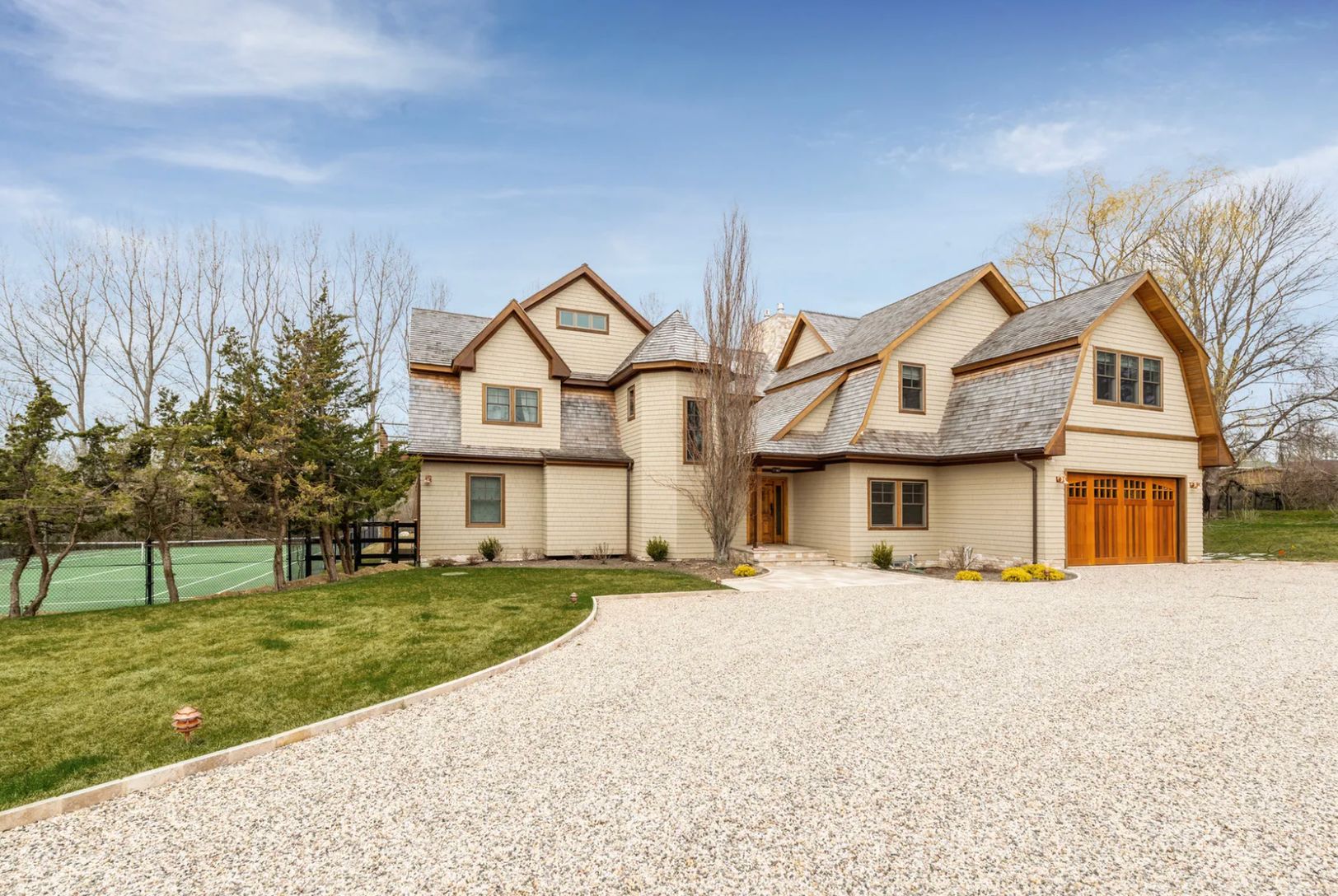 Beautifully renovated Hamptons traditional offering 4,500± sq. ft. of living space with five bedrooms and four and a half baths. Set on a landscaped acre in horse and wine country, the home features a heated pool, private tennis court, and sun-filled interiors with a double-height living room, fireplace, formal dining area, and gourmet eat-in kitchen. Three spacious primary suites are upstairs, one with a private terrace, plus a finished lower