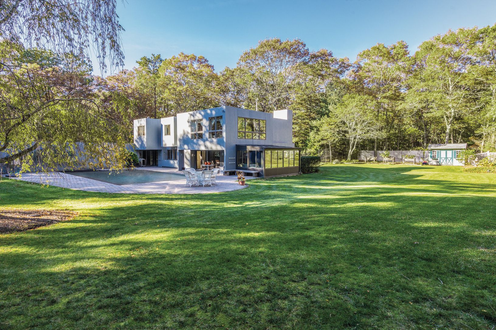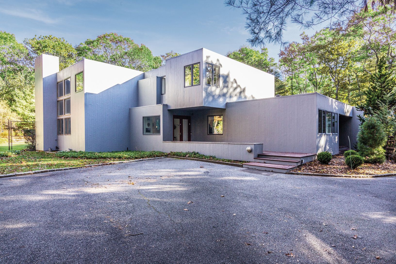 On a secluded corner property on just-shy two acres in East Hampton discover this lovingly maintained two-story contemporary home. Designed by architect Don Chapel, the home was one of the first residences built on Bull Path, in 1978, by a published builder who constructed many of the Gwathmey homes here on the East End, and is offered by its original owners. The 3,000+/- sq. ft. home with four bedrooms and three baths has enjoyed numerous upg