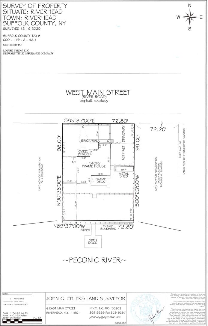 Updated waterfront cottage with dock on the Peconic River, ideally located on West Main Street in Riverhead and offering a strong rental history. Originally built in 1939, this two-story home features 2 bedrooms and 2 full baths with approximately 1,032 square feet of living space and beautiful water views throughout. The main level includes an eat-in kitchen with granite countertops and stainless steel appliances, a living and dining area, tw