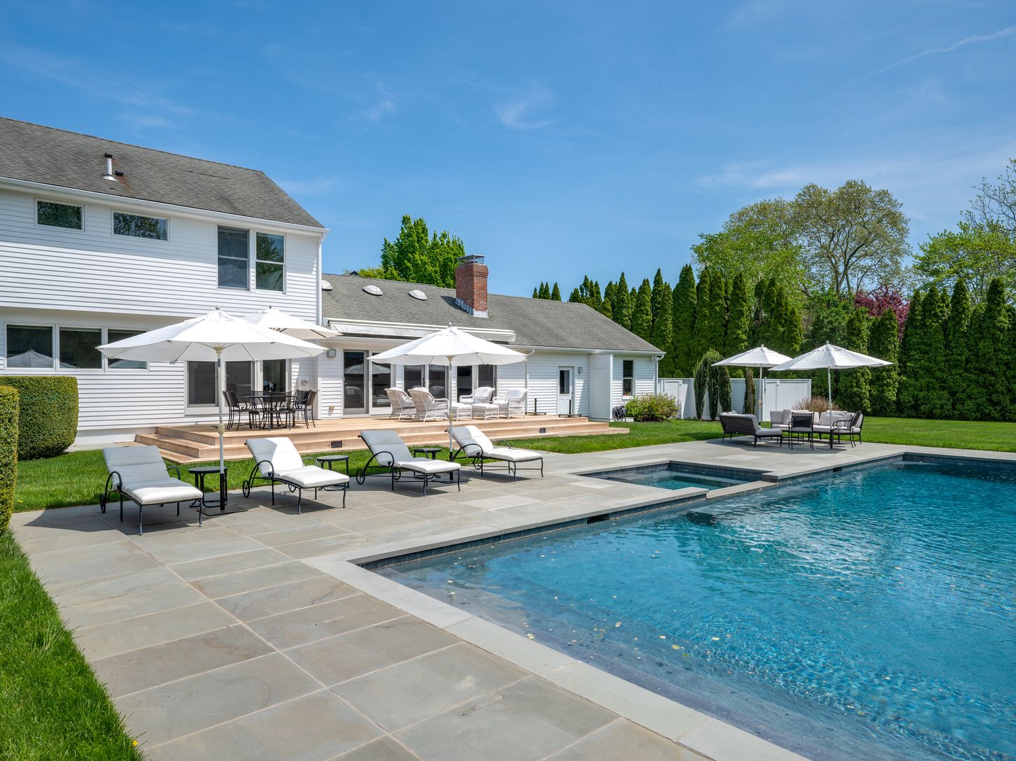 Ideally located in Southampton Village near shops and ocean beaches, this completely renovated 4 ensuite bedroom home is clean and bright and a perfect summer rental. First floor master is a plus. The outside space is outstanding with side and rear decks, heated gunite pool surrounded by childproof fencing all on a beautifully manicured one acre lot.