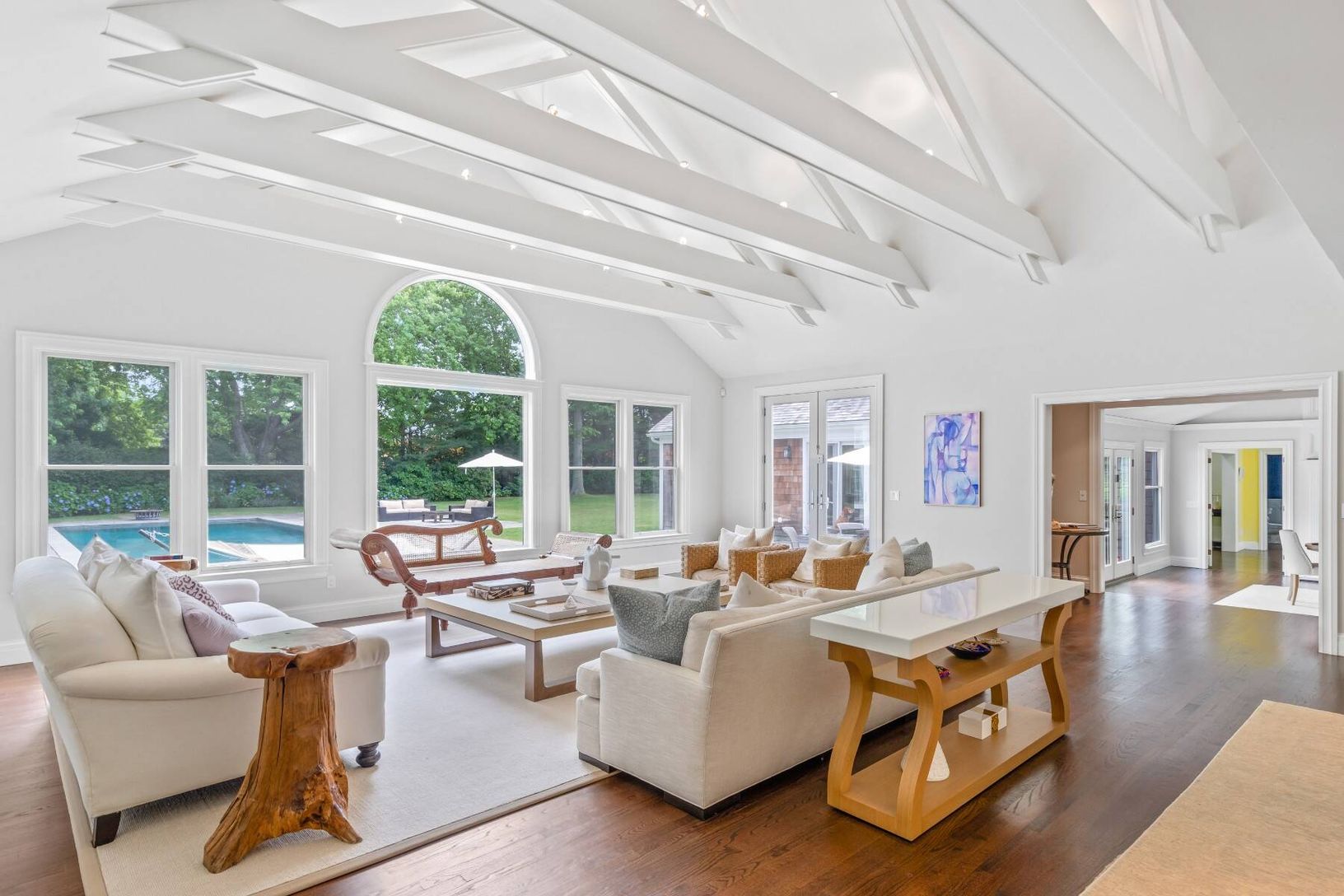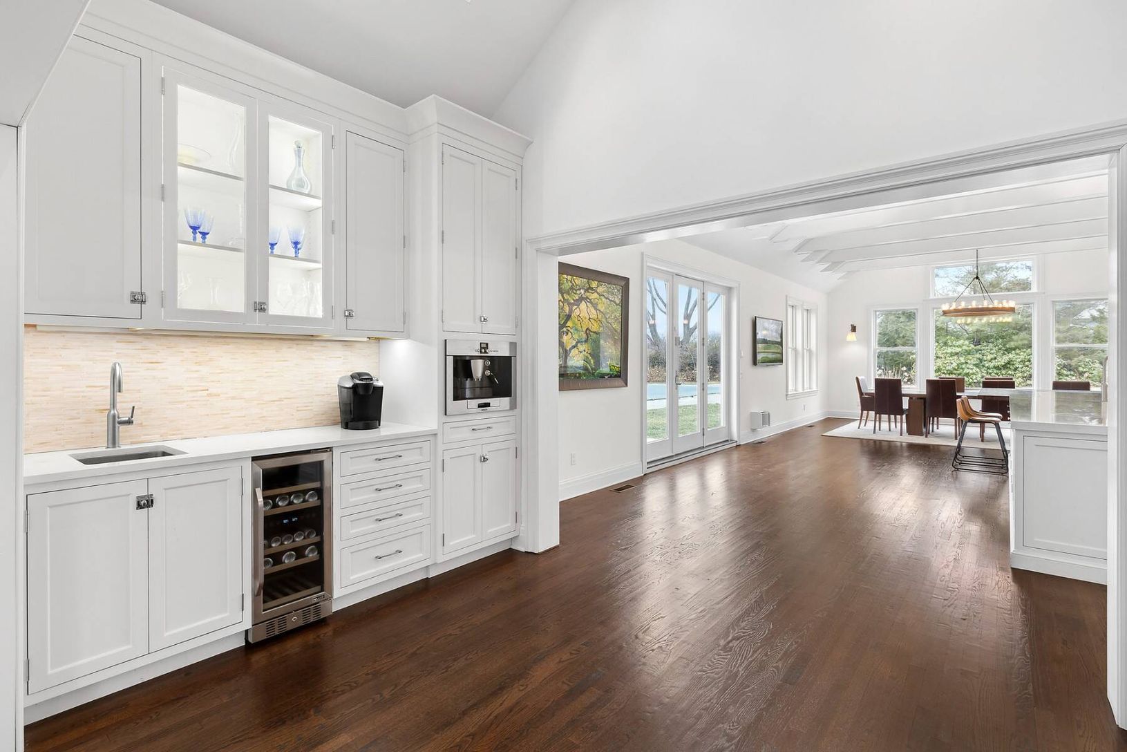 Rarely does a turnkey, gated, South-of-Highway estate, set on a sprawling 1.4-acre property come available at this price. Perfect for a large family or Hamptons entertaining, this expansive abode has everything you need and more. Tastefully renovated, this 9000 +/- sq. ft. home (6500 +/- above ground, 2500 +/- below, w/ additional 700 sq.foot 6-car garage) is thoughtfully laid out for comfort and functionality. Enter under a covered porch to a